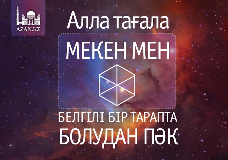 Егер олар: «Алла Аршыда, аспанда және де бірде бір тарапта орналаспады десеңіз, Ол қайда?» деп сұраса, оларға былай деп жауап беріңіз: «Сіз «қайда» деген сөзді қолданып оны сипаттау арқылы, өз надандығыңызды көрсеттіңіз, өйткені бұл мекен-жайды білдіретін сұрақ, ал Алла Тағалаға белгілі бір мекенге орналасу тән емес». Одан кейін оларға мына сұрақты қойыңыз: «Сіз Аршының, аспанның және барлық мекеннің жаратылғанын мойындайсыз ба?». Егер олар жаратылмады деп жауап берсе, кеңістіктің бастауы жоқ деген пікірде болуларын білдіреді, демек, бұл әңгімені кеңістіктің жаратылысы саласында өрбіту керек. Ал егер олар барлық тараптың жаратылғанын мойындаса, оларға мына сұрақты қойыңыз: «Алла мекен жаратылғанға дейін бар болды ма? Ол оларды жоқтан жаратты ма жоқ па?». Егер олар Алла мекендерге дейін болмады, және Ол оларды жаратқан емес десе, онда бұл олардың Құдайды жаратылған деген пікірде болғандарын білдіреді. Ал бұл айқын күпірлік. Егер де олар Құдай барлық мақұлықтар жаратылмай тұрып та бар болды деген дұрыс пікірде болса, оларға мына сұрақты қойыңыз: «Барлық жаратылысқа дейін Алла Тағала қандай қалыпта болды?». Олардың жаратылысқа дейін Алла жайында айтқандары, бұл- барлық нәрсені жаратқаннан кейін Алла Тағала қандай қалыпта екенінің дәлелі, өйткені Алла барлық нәрсені жаратқаннан кейін де еш өзгерместен сол қалыпта болды. Аллаға бір қалыптан екінші қалыпқа, бір мекеннен екінші мекенге ауысу тән емес.