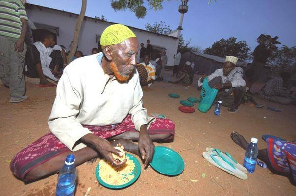 Біздің айтайын дегеніміз басқа болатын. Сомалиде тұратын бір мұсылманның жазған хаты хақында еді. Сауд Арабиясының шейх-ғалымы эфирде көрермендер сұрағына жауап беріп жатады. Бағдарлама қонағына сауал жолдаған Сомали мұсылманы былай дейді: «Сәресі мен ауызашарда жейтін ештеңе жоқ. Мұндай кезде ораза ұстауға бола ма?» Бұған жауап бере алмай, көңілі босаған шейх көз жасына ерік беріпті (суретті қараңыз).