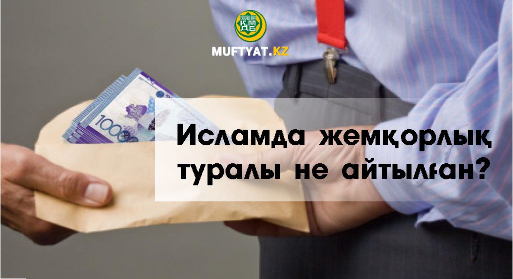 Асыл дініміз исламда жетпіс үлкен күнәнің бірі – жемқорлық болып саналады. Қасиетті Құранның «Бақара сүресінің» 188-аятында: «Араларыңдағы малдарыңды (дүниені) бұзық жолмен жемеңдер. Сондай-ақ, біле тұра адамдардың малынан бір бөлім жеу үшін билерге апармаңдар» деп әмір етілген. Ұлы Жаратушы Алла Тағала жемқорлықты барынша айыптап, оған ауыр жаза болатындығын ескерткен.