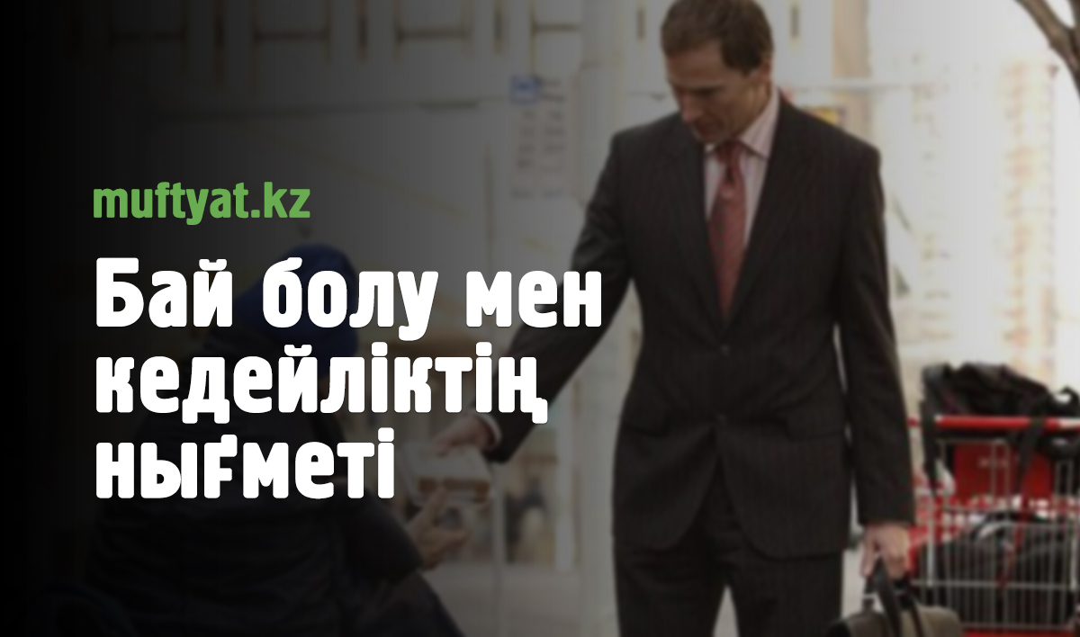 Кедей адам кішіпейіл және мейірімді болғанда ғана екі дүниенің рахатын таба алады. Ал енді байлықпен бірге ілесіп қанағатсыздық, сараңдық пен қатыгездік жүрсе онда ол кесапат. Ал, байлықтың жанында дос болып қанағатшылдық пен мейірімділік және жомарттық қелсе онда ол, нығмет. Бай болу жаман емес, дүние табу харам емес, егер ол байлығың Аллаға деген құлшылығыңа кедергі етпесе. Халқымыз: Бір бай, бір ауылды асырыған- дейтін. Бұл жәй сөз емес, іспен дәлеледенген нәрсе. Оған еліміздің барлық жеріндегі мешіттер мен медіреселердің салынуы. Сол мешіттер мен медресе және көптеген қайырымдылық қорлардағы істелінген қайырымдылық шаралардың жүзеге асырылуы дәлел бола алады. Осының бәріне мұрындық болып, мал мен байлығының зекеті мен садақасын шығарған бай азаматтар. Алла Тағала ондай жандардың жақсылықтарын екі дүниеде де еселейді. Ол жайында Құран Кәрімдегі Ләйіл сүресінің 5-6-7-ші аяттарында былай делінген: «(Алла жолында) қазына жұмсаған, діндәрлық жасаған, жақсылыққы ден қойған адамдарға келсек, Біз олардың өмір жолын жеңілдетеміз (дұрыс бағытқа саламыз)». Алладан қорқып, малын Раббысына шүкір қылған құлдарыдай жөнімен жұмсаса (адалдан тауып, адалға жұмсаса), екі дүниенің рахатын табады. Бақара сүресінің 270-271-ші аяттарында: «(Алла үшін) Не нәрсе берсеңдер де, не бермек болсаңдар да Алла оны шын мәнініде біліп тұрады. Ал залымдарға еш қайыр жасамайды. Садақаны ашық бергендерің бір жақсылық (басқаларға үлгі боласыңдар), ал оны жасырын берсеңдер, әрі жоқ-жітікке берсеңдер, ол тіпті жақсы. Ол сендердің кейбір күнәларыңның алдын кеседі. Пенденің ісінен Алла қашанда хабардар».