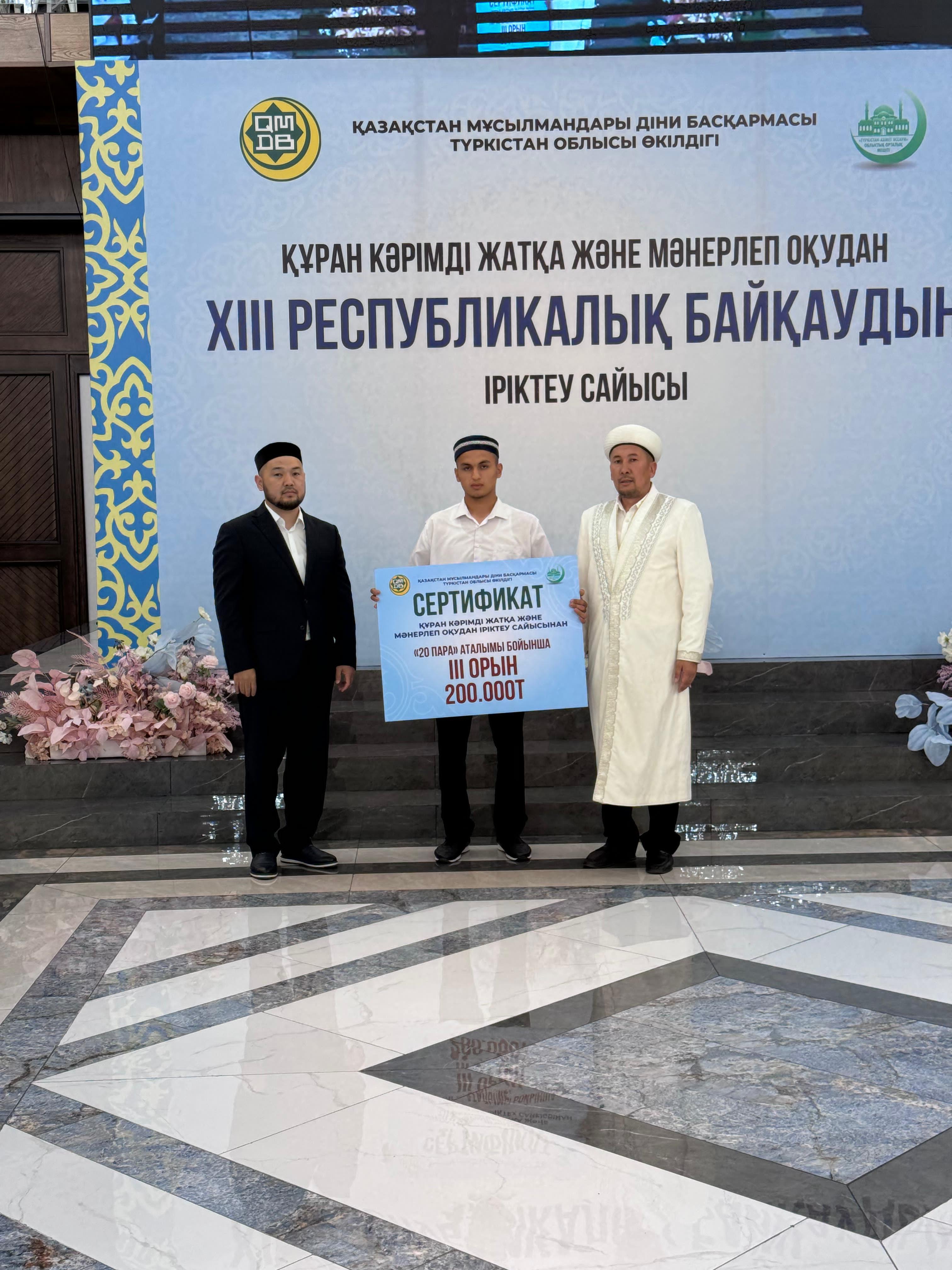 Іріктеу кезеңінде еліміздің әр өңірінен, атап айтқанда, Алматы, Маңғыстау, Қызылорда, Шымкент, Түркістан облыстарынан келген 72 шәкірт бақ сынасты. Жүзден жүйрік шыққан шәкірттер Павлодар облысында өтетін Құран Кәрімді жатқа және мәнерлеп өтетін ХІІІ республикалық Құран жарысына жолдама алды.