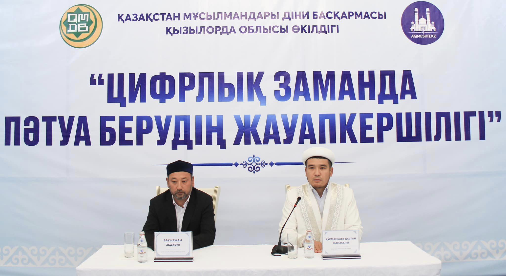 Қызылорда облыстық «Ақмешіт-Сырдария» мешітінде ҚМДБ Шариғат және пәтуа бөлімінің маманы, РАНТ мүшесі Бауыржан Әбдуәлінің қатысуымен «Цифрлық заманда пәтуа берудің жауапкершілігі» тақырыбында семинар ұйымдастырылды.