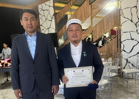 Атырау облысы Жылыой ауданының әкімі Жұмабек Қаражанов ауданның бас имамы Жасұлан Қағазғалиевке арнайы төсбелгі табыс етті.