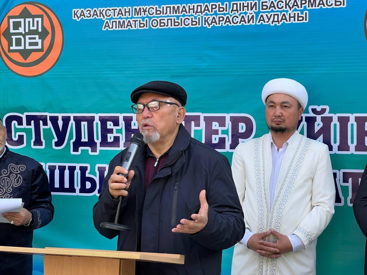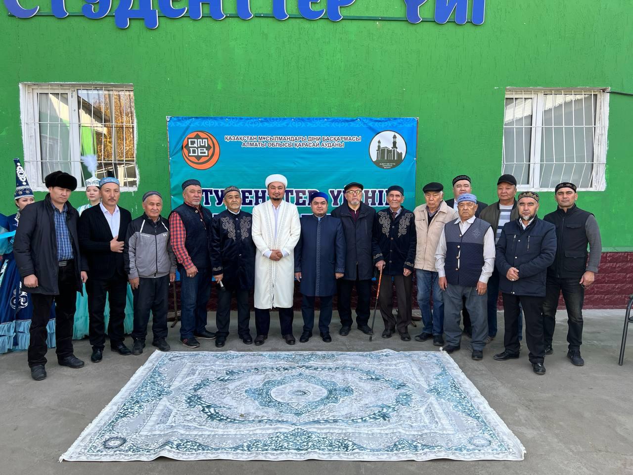 Студенттер үйінің ашылуы Қасиетті Құран Кәрім оқумен басталды. Ринат Маратұлы Алматы облысының бас имамы Мадияр қажы Тағайбайұлының құттықтау сәлемін жеткізіп, алғысөз сөйледі. Аудан имамы Дәуренбек Жандосұлы сөз алып, құрылыс барысына атсалысқан жандарға ізгі тілегін білдірді. Жиын соңында жиналған көпшілікке арнайы дастархан жайылып ас берілді.