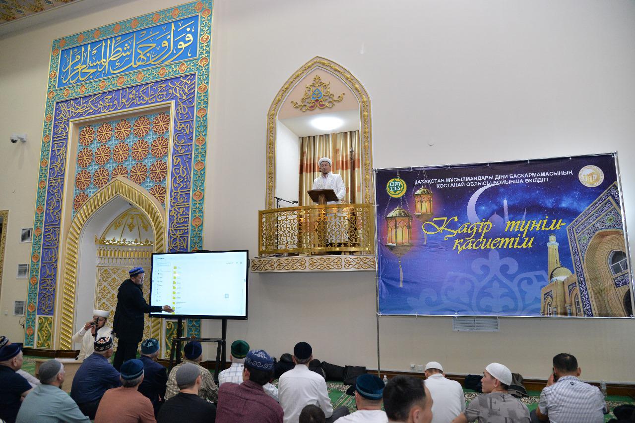 Бектұрсын Уәлиев бастаған имамдар Қадір түнінінің қадір-қасиеті жайлы жиналғандарға мазмұны терең, тыңдауға ұғынықты уағыз айтты. Сондай-ақ жиналған қауымның діни білімін шыңдау мақсатында танымдық викториналық сұрақ-жауап ойындары өткізілді. Жеңімпаздарға, мешіттің бес уақыт намазына тұрақты қатысқан жамағатқа және ауызашар барысында белсенді қызмет көрсеткен шәкірттерге Құран және діни кітаптар табыс етілді. Тәсбих намазы оқылып, еркін құлшылық жасауға мүмкіндік берілді.