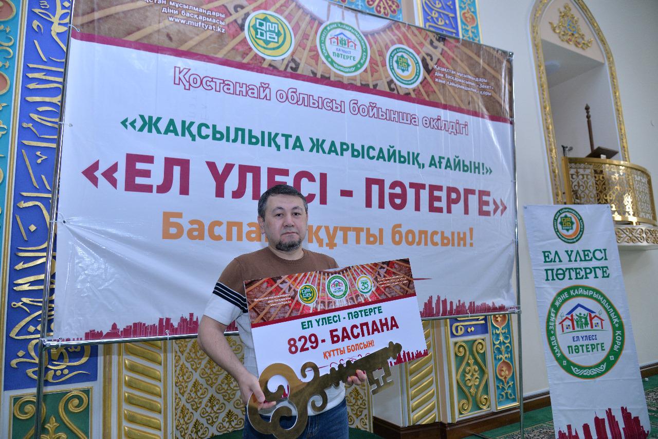 «Аймағанбет қажы Спанұлы» мешіті жанындағы «Зекет және қайырымдылық» қорының тікелей мұрындық болуымен елімізде жүріп жатқан «Ел үлесі – пәтерге» жобасы аясында қостанайлық азамат Ербол Мухиядиновқа пәтер кілті табыс етілді. Бұл республикамыздағы көмекке мұқтаж жандарға беріліп отырған 829-баспана.