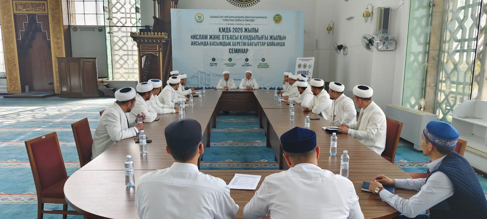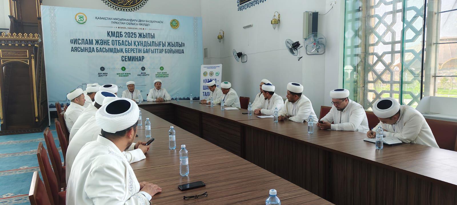 Түркістан облыстық өкілдігінің ұйымдастыруымен қала, аудан бас имамдарына арналған «Халал – шариғат талабы» тақырыбында оқу-семинар өтті.