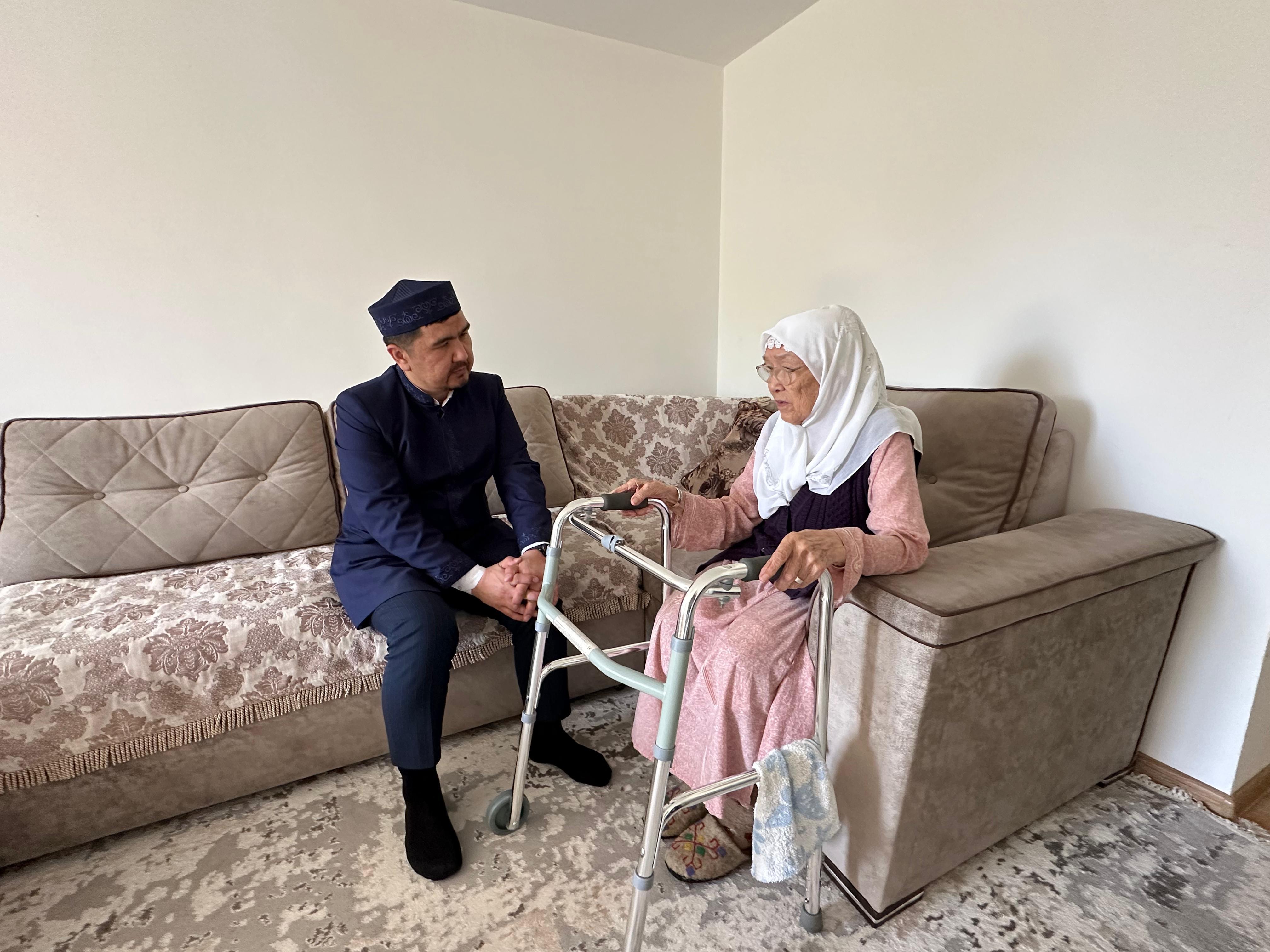 Ұлы Жеңістің 80 жылдығы аясында Қазақстан мұсылмандары діни басқармасының Шығыс Қазақстан облысы бойынша Бас имамы Думан Нәдірұлы Өскемен қаласында тұратын тыл ардагерлері – Ғайни Қабдулина мен Бибісара Рахимбердинованың шаңырағына арнайы барып, құрмет көрсетті.