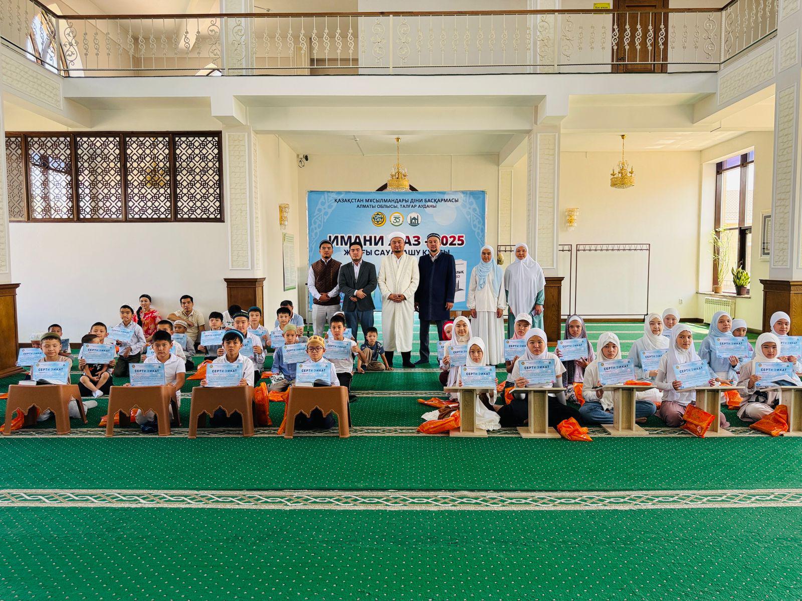 Алматы облысы бойынша маусым айында ұйымдастырылған «Имани жаз – 2025» жазғы діни сауат ашу курсы табысты аяқталды. Жалпы 3821 бала қатысып, діни білім алды. Оның ішінде 2462-сі ұл бала, 1359-ы қыз бала.