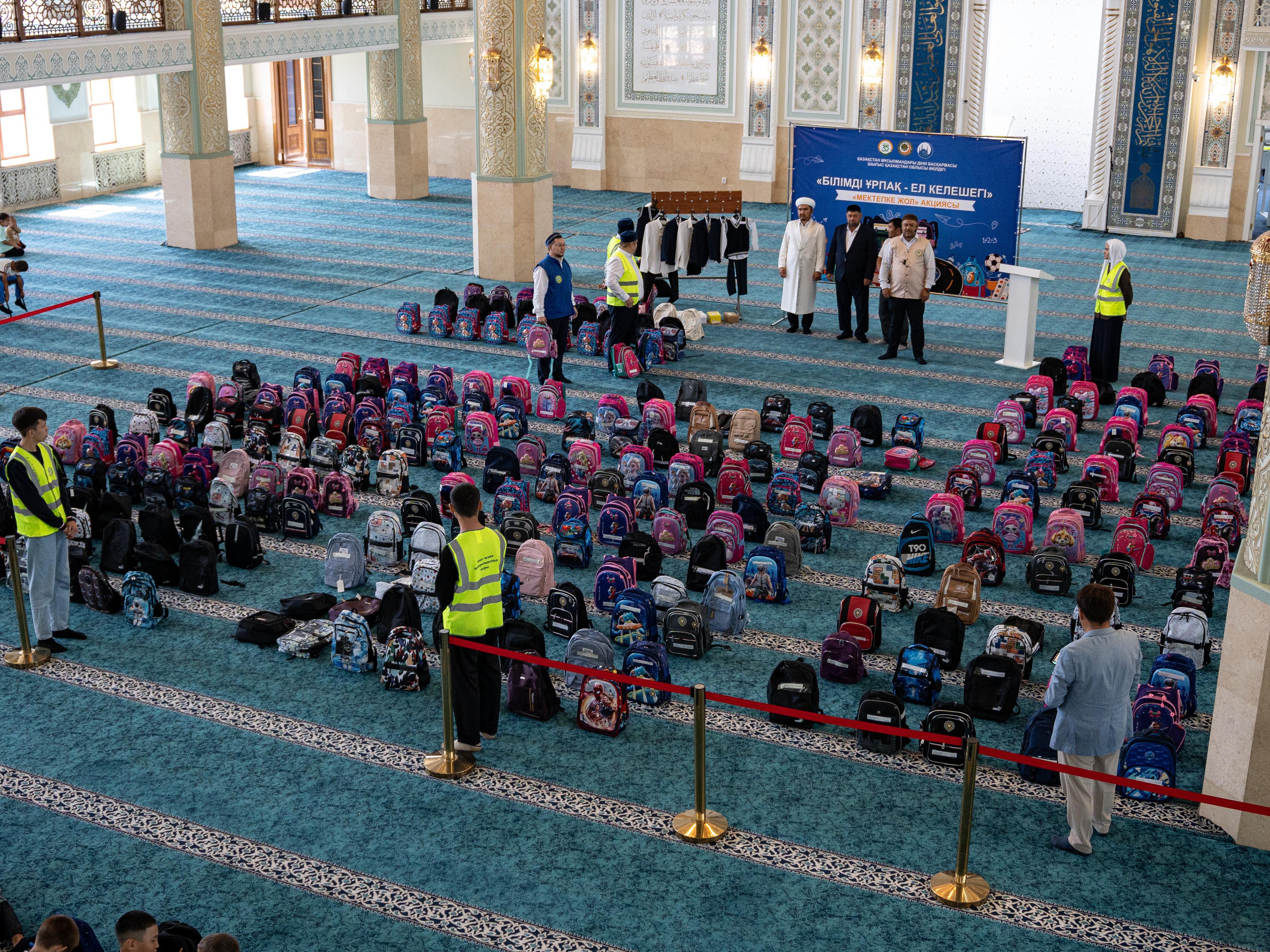 Игі шара облыстық «Халифа Алтай» мешітінде ұйымдастырылып, жаңа оқу жылы қарсаңында әлеуметтік жағдайы төмен және көпбалалы отбасылардан шыққан 300 балаға сөмке мен оқу құралдары табысталды.
