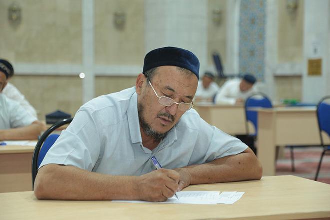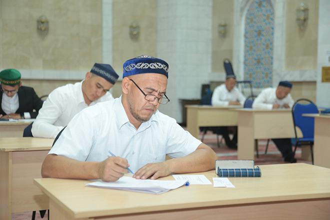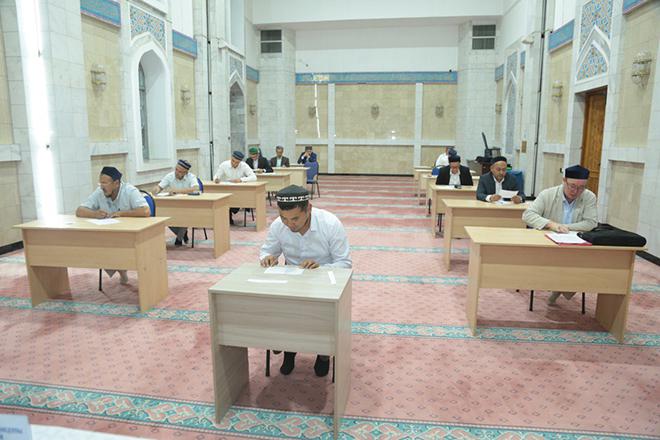 Мүфтият бастамасымен қолға алынған білім жетілдіру іс-шарасында республика бойынша А,В,С санаты бойынша имамдар емтихан тапсыруда. Бұдан алдын имамдардың діни білімін арттыру, құран ілімі, фиқһ негіздерін меңгеру және шариғат ілімдерін терең түсіндіру мақсатында ұйымдастырылған біліктілікті арттыру курсы өткізілген болатын. Курс негізінде бүгін бірқатар имамдар мен дін қызметкерлері алған білімдерін ортаға салып, емтихан тапсырды.