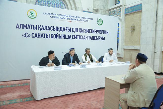 Қазақстан мұсылмандары діни басқармасы Діни білім және кадр дайындау бөлімінің тапсырмасымен Алматы қаласы бойынша «С» санаты бойынша діни қызметкерлер емтихан тапсырды.