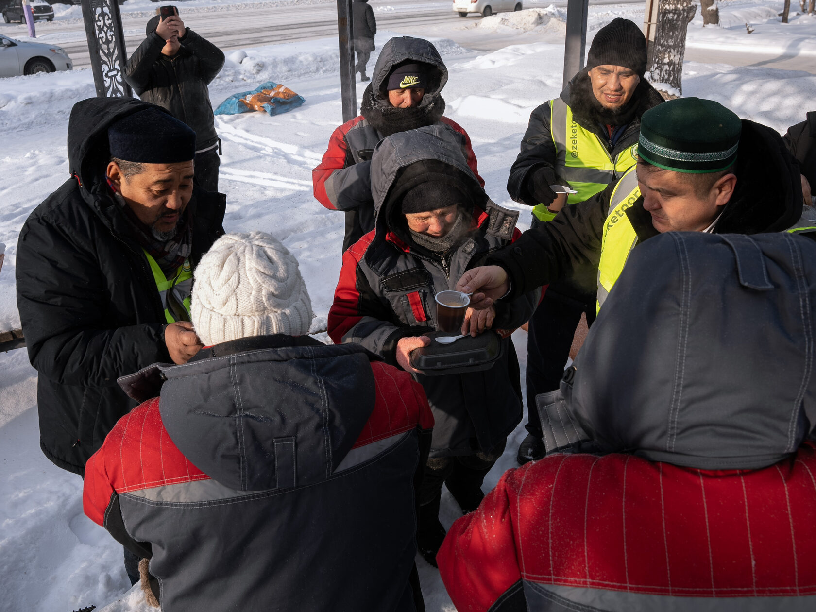 Іс-шара барысында қала тазалығы мен тұрғындардың күнделікті тұрмыс-тіршілігі үшін аянбай еңбек етіп жүрген коммуналдық қызметкерлерге ыстық шай ұсынылып, алғыс айтылып, ізгі тілектер білдірілді.