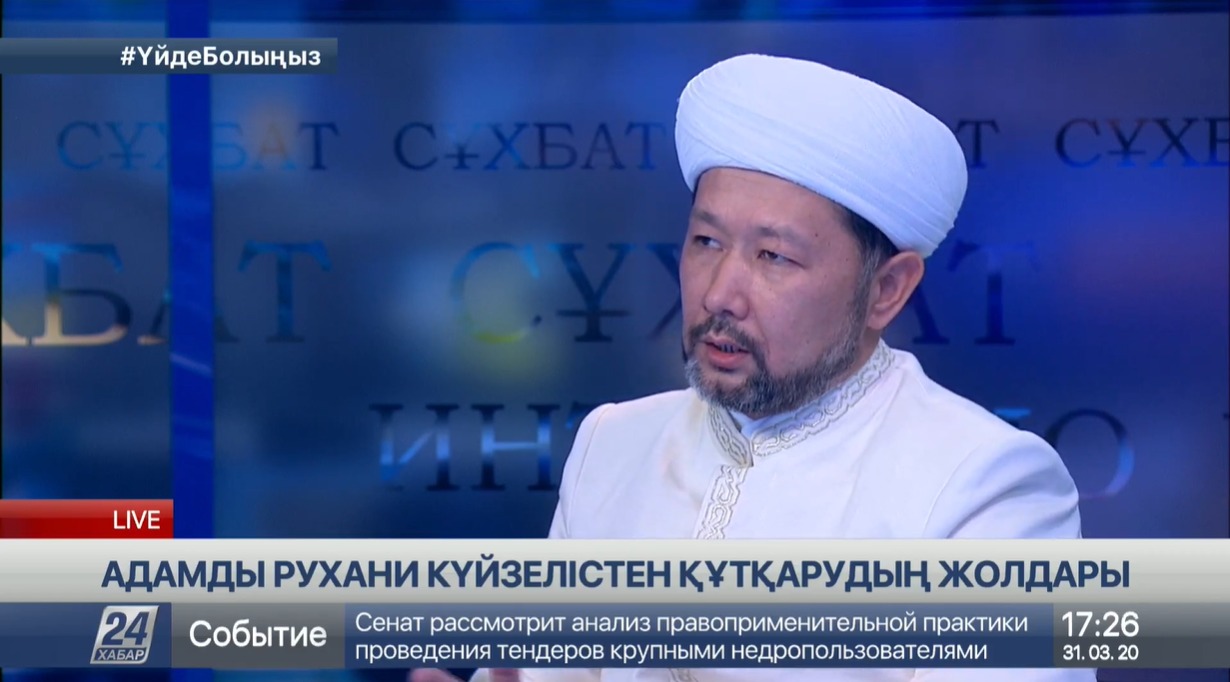 «Адамды рухани күйзелістен құтқарудың жолдары» атты тақырыпта өрбіген сұхбатта Бас мүфти Наурызбай қажы Тағанұлы: «Халқымызда «Жақсы сөз – жарым ырыс» деген мағынасы терең мақал бар. Қасиетті Рамазан айын мешіттерімізде барша жамағатпен қарсы алуға асықпыз. Алла Тағала осы күнді жақындатқай. Ардақты Пайғамбарымыз Мұхаммед (оған Алланың салауаты мен сәлемі болсын) бір хадисінде мүміннің амалы ниетіне тәуелді екенін өсиет еткен. Демек, біздің амалымыз, тіршіліктегі әрбір әрекетіміз амалымызға байланысты болмақ. Осы ретте барша мұсылман қауымын дұға жасап, жақсы ниетпен қасиетті айды қарсы алуға шақырамын» деді.