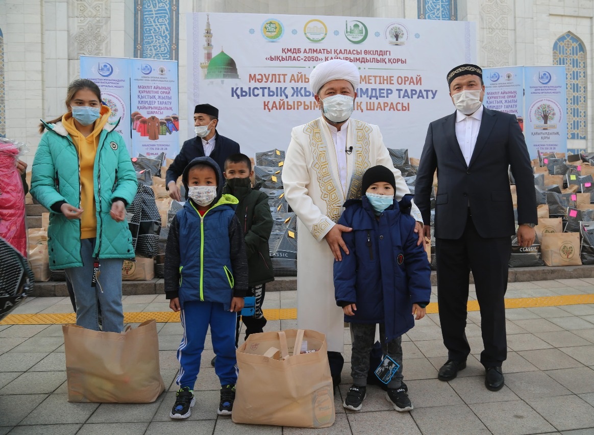 Бүгін Қазақстан мұсылмандары діни басқармасының төрағасы, Бас мүфти Наурызбай қажы Тағанұлының қатысуымен Алматы қалалық орталық мешітінде мәуліт айының құрметіне орай «Қыстық жылы киімдерді тарату» қайырымдылық шарасы өтті.