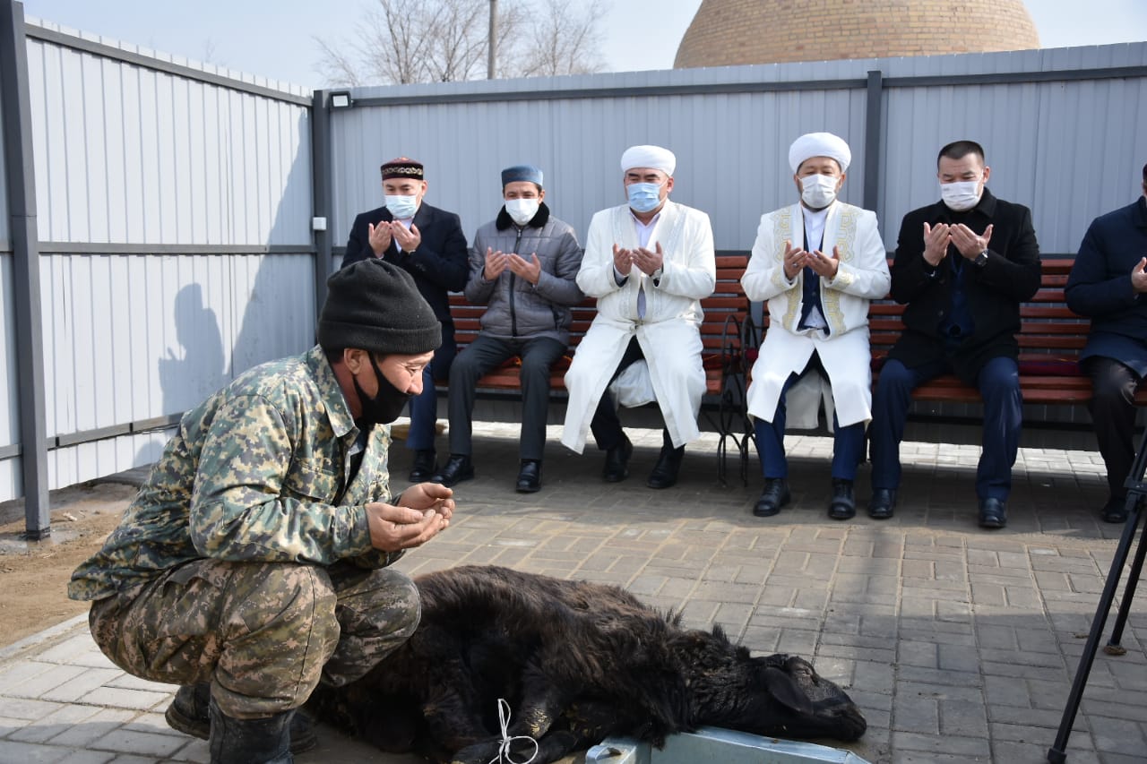 Құрбан шалу рәсімінде Бас мүфти: «Уа, Алла Тағала! Әр істің соңғы нәтижесі Саған ғана аян. Бізге бұл сынақты жеңілдет, оның соңын қайырлы ет. Өзіңнің разылығың үшін шалған құрбандығымызды қабыл алғайсың. Еліміздегі күллі мешіттің есігін жұма намазға толық ашқайсың. Жер бетінен жұқпалы індетті жойып, бұл сынақты қуанышқа ұластыра гөр. Елімізге амандық, жерімізге тыныштық нәсіп ет. Халқымызды түрлі бүліктен сақтап, бірлігін бекем еткейсің. Әмин!» деп дұға етті.