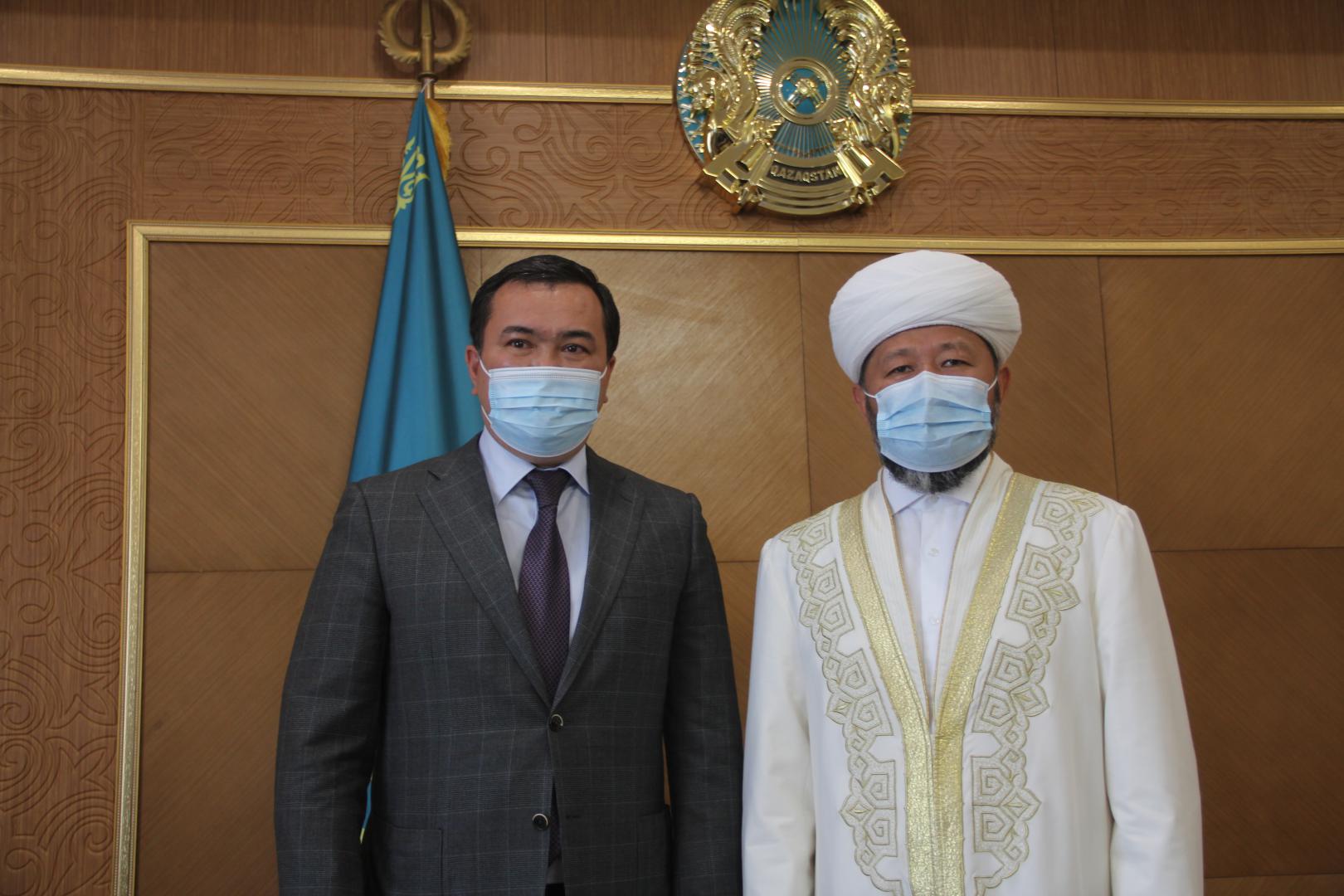 Қарағанды облысына екі күндік ресми сапармен келген ҚМДБ Төрағасы, Бас мүфти Наурызбай қажы Тағанұлы бүгін аймақ басшысы Жеңіс Қасымбекпен кездесті.