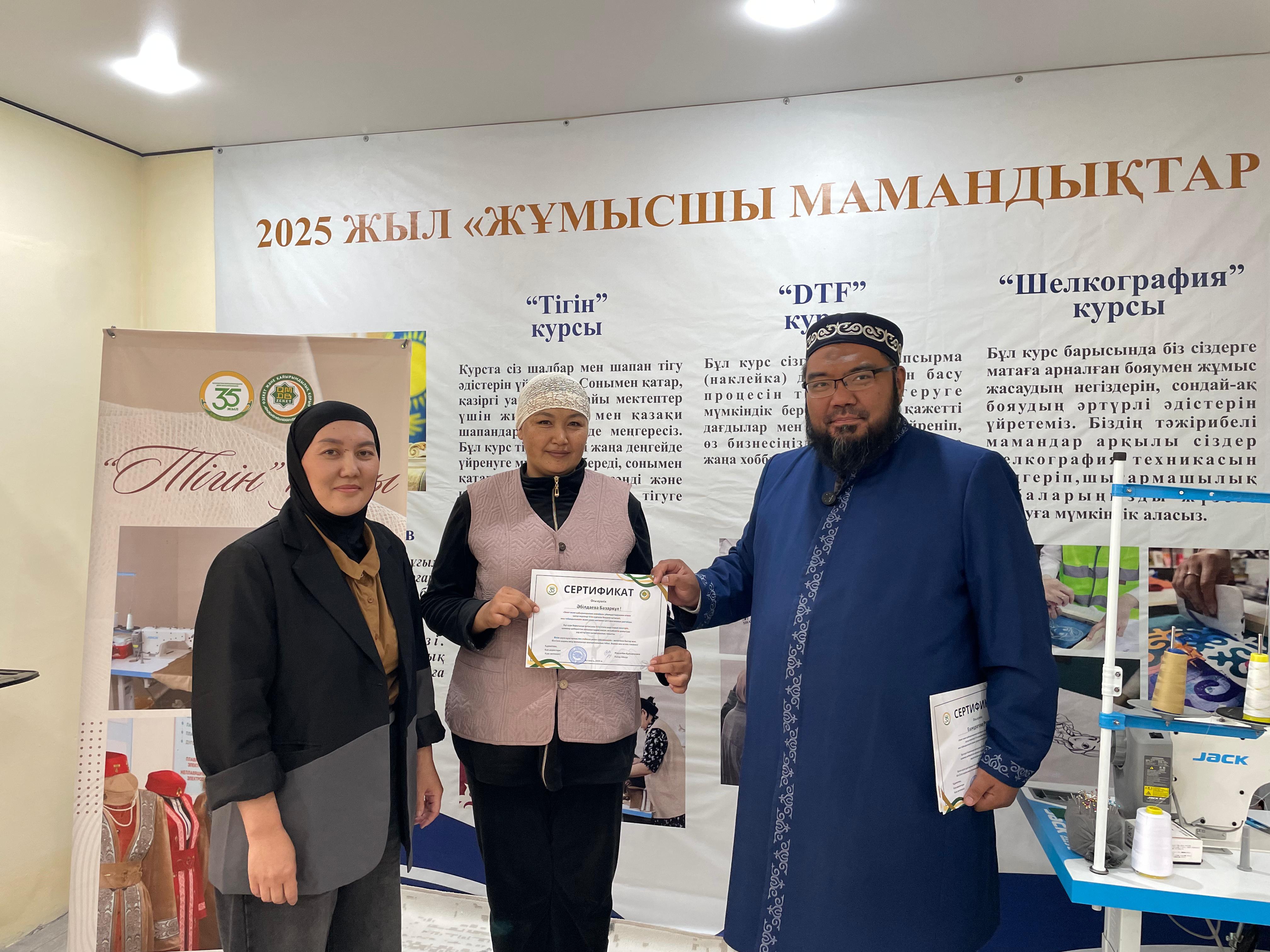 ҚМДБ «Зекет және қайырымдылық» қорының «Мамандықтар мектебі» әлеуметтік жобасы аясында Астана қаласына іргелес орналасқан Пригород елдімекеніндегі оқу орталығында қысқа мерзімді тегін тігін курсы ұйымдастырылды.