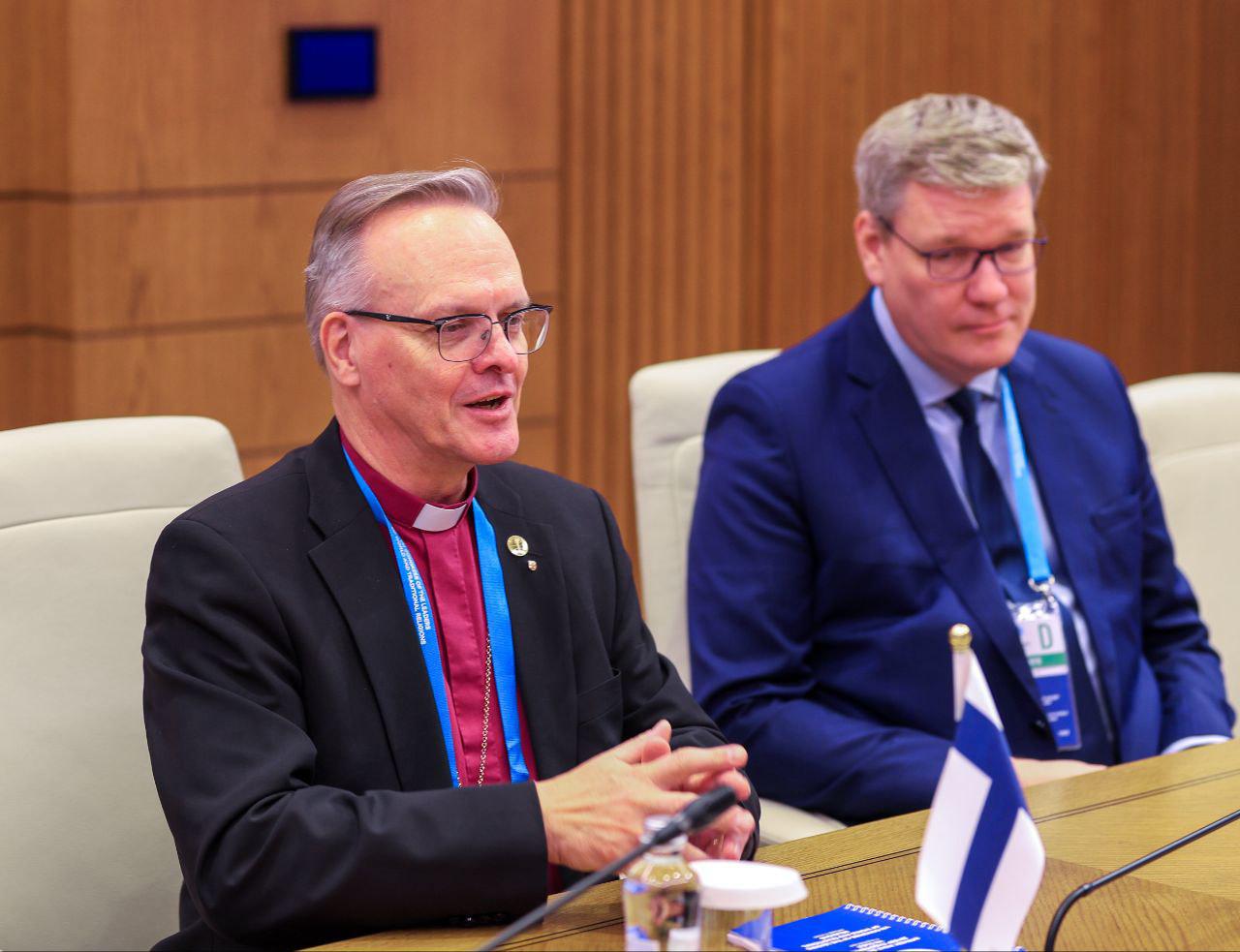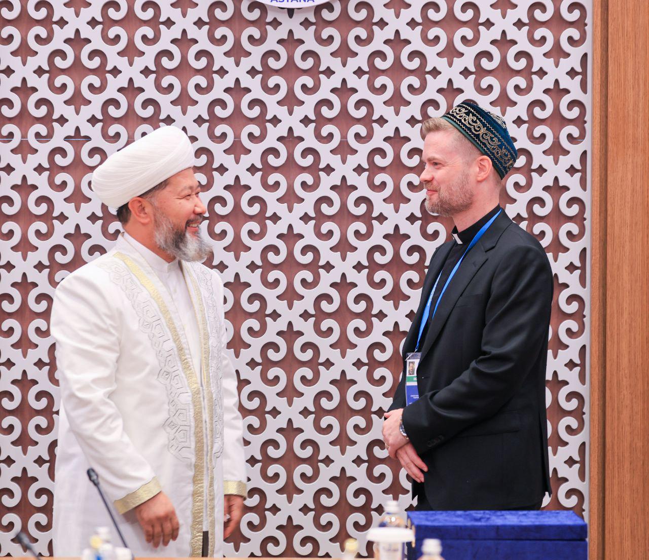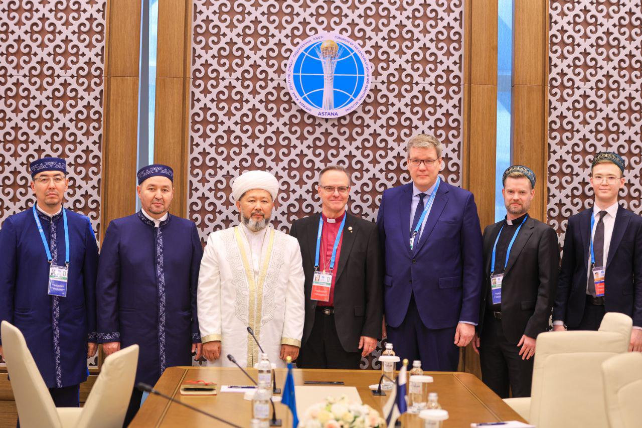 Астанада өткен Әлемдік және дәстүрлі діндер лидерлерінің VIII съезі аясында ҚМДБ Төрағасы, Бас мүфти Наурызбай қажы Тағанұлы Финляндия архиепископы Тапио Юхани Луомамен кездесті.