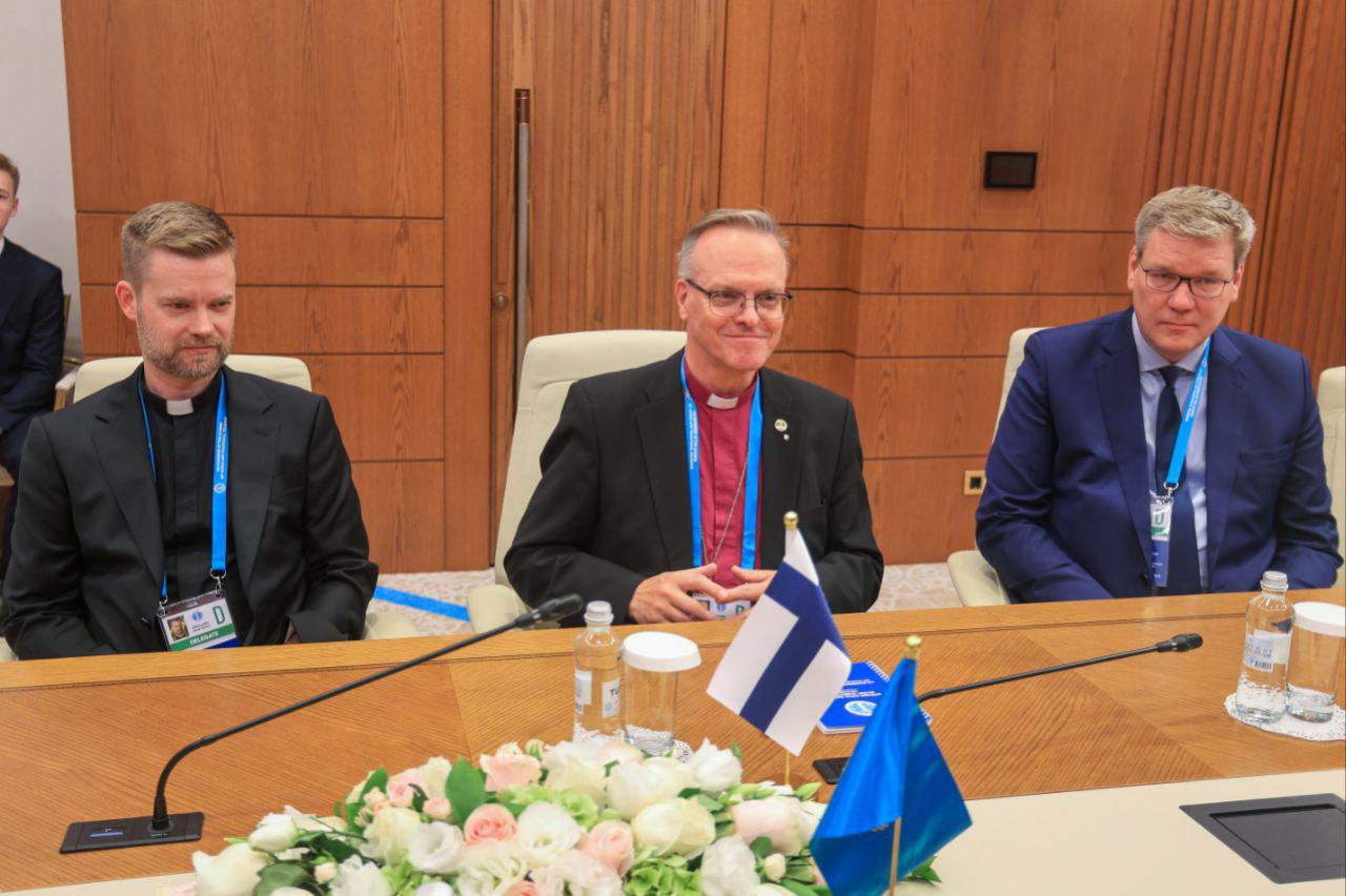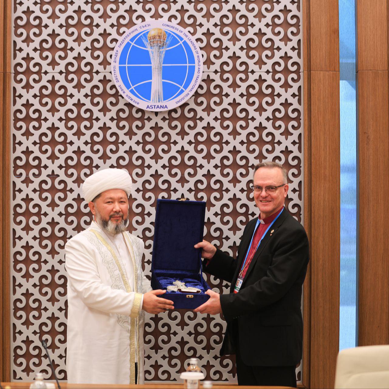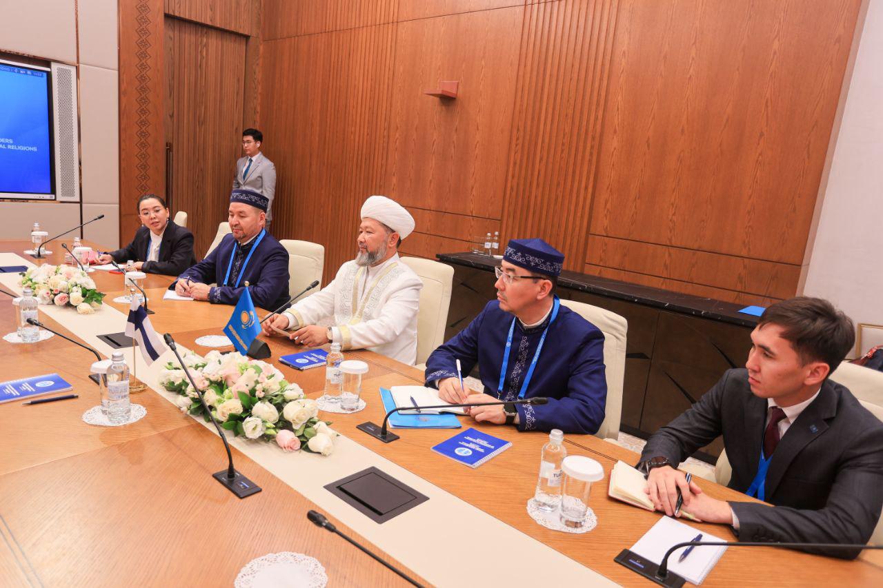 Астанада өткен Әлемдік және дәстүрлі діндер лидерлерінің VIII съезі аясында ҚМДБ Төрағасы, Бас мүфти Наурызбай қажы Тағанұлы Финляндия архиепископы Тапио Юхани Луомамен кездесті.