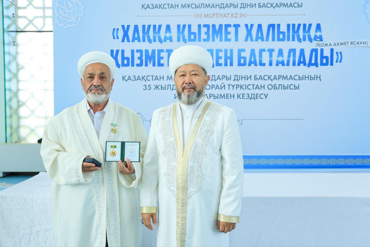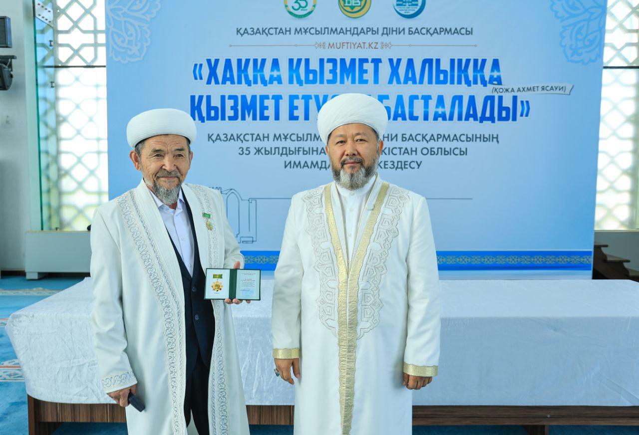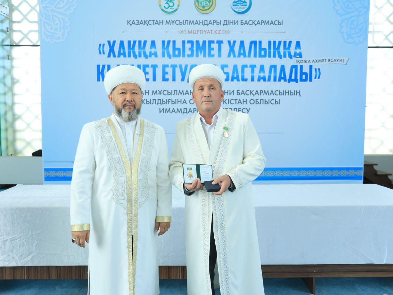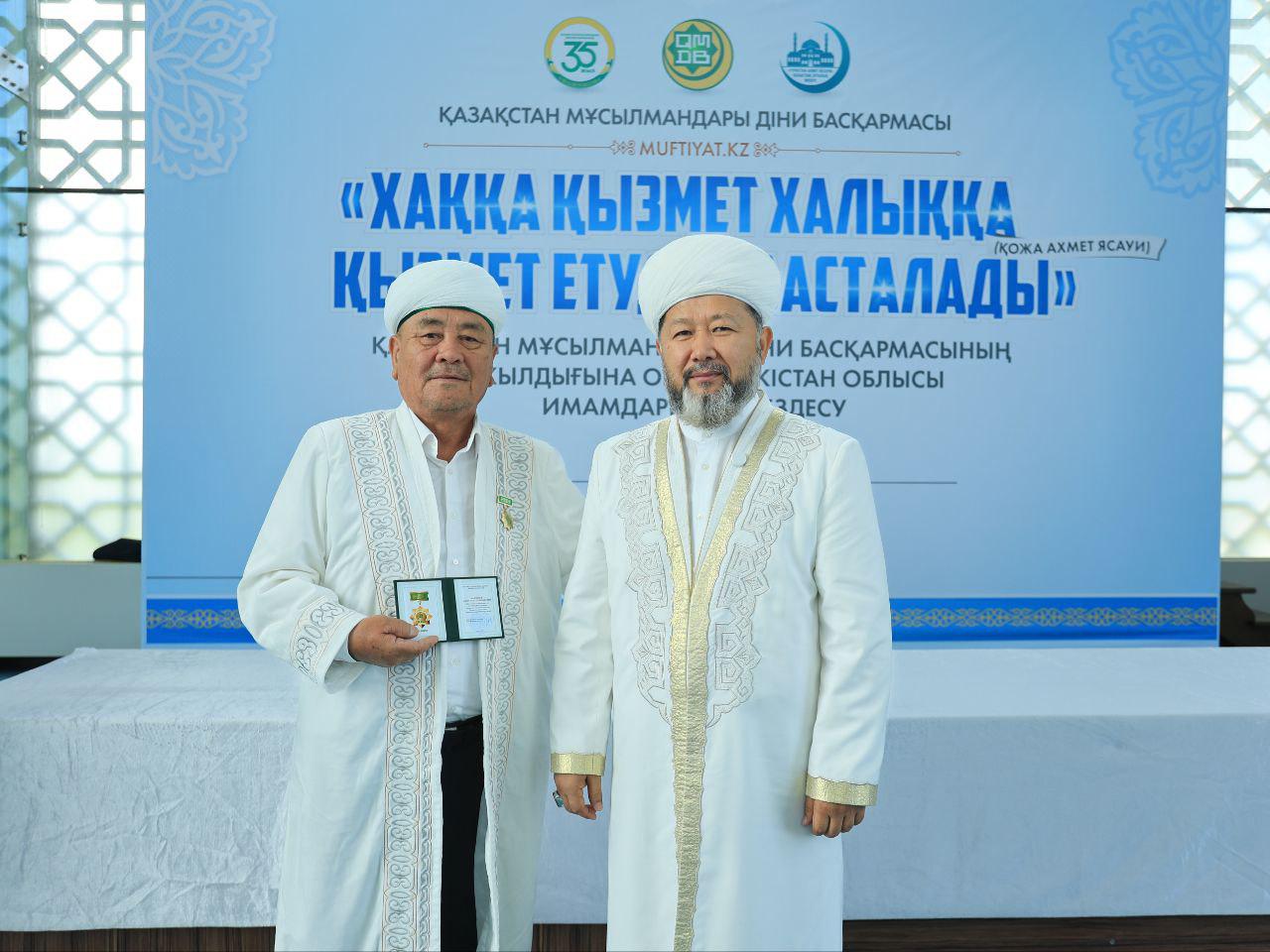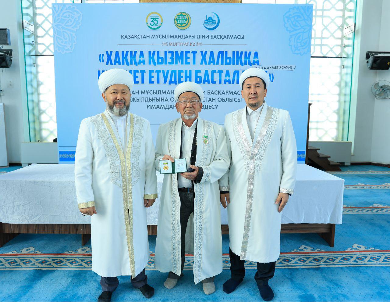Кездесу соңында ҚМДБ-ның 35 жылдық мерейтойына орай дін саласында ұзақ жылдар бойы табанды қызмет етіп келе жатқан Түркістан облысының бірқатар ардагер имамдары мерекелік медальмен марапатталды.