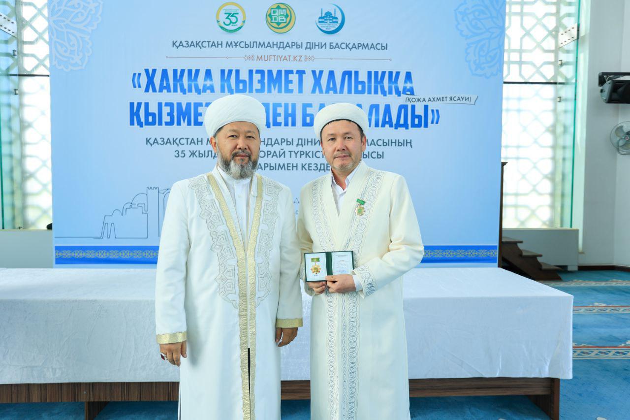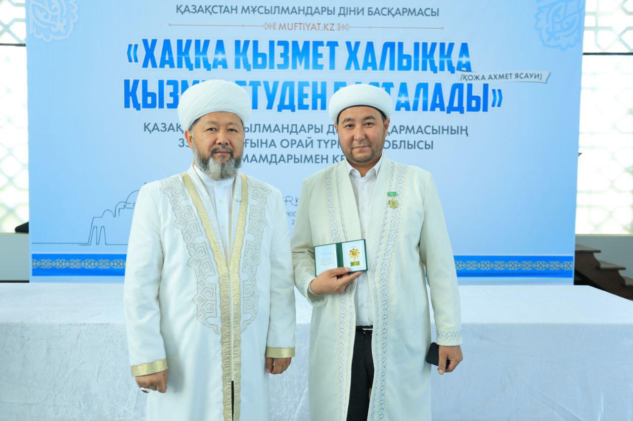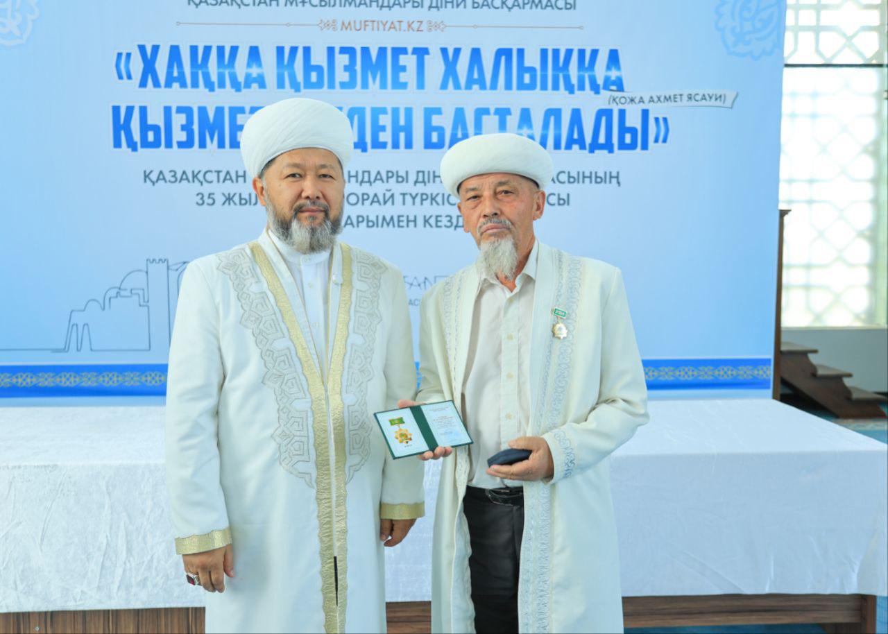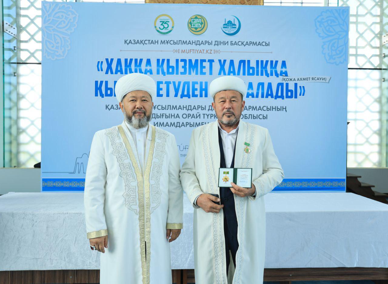Кездесу соңында ҚМДБ-ның 35 жылдық мерейтойына орай дін саласында ұзақ жылдар бойы табанды қызмет етіп келе жатқан Түркістан облысының бірқатар ардагер имамдары мерекелік медальмен марапатталды.