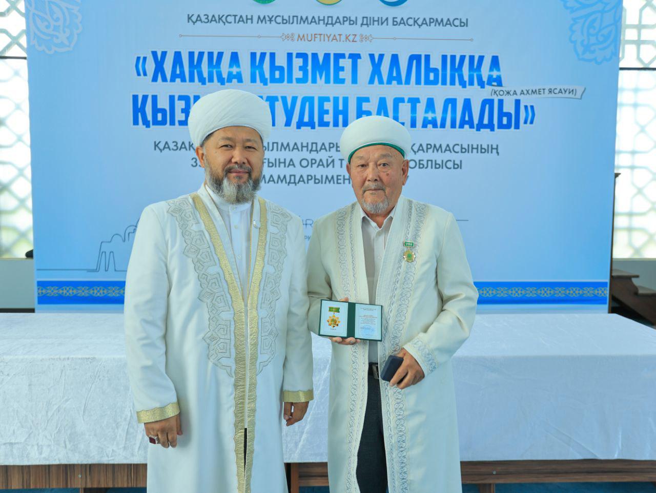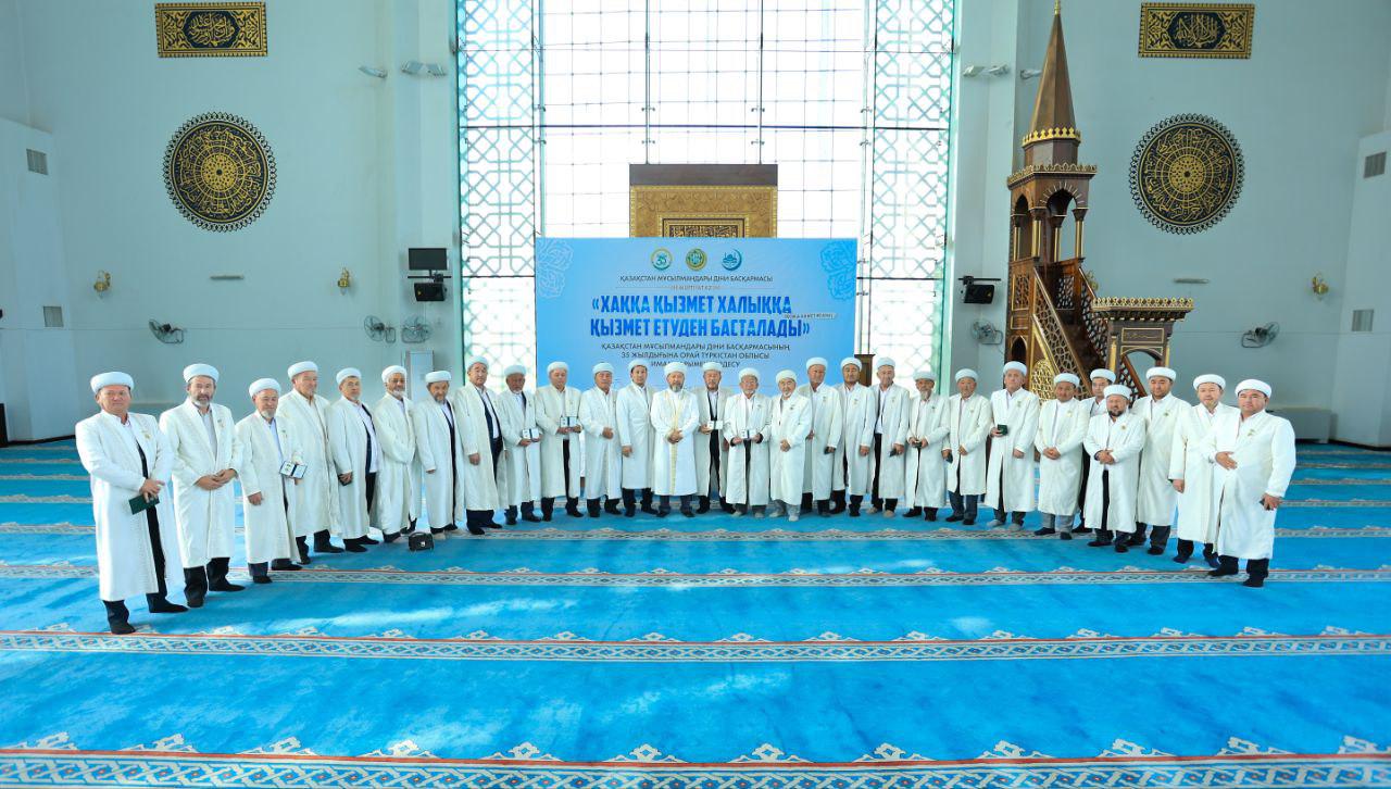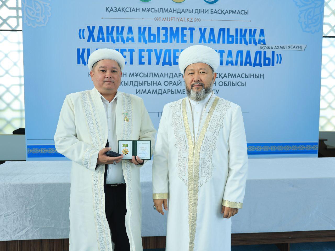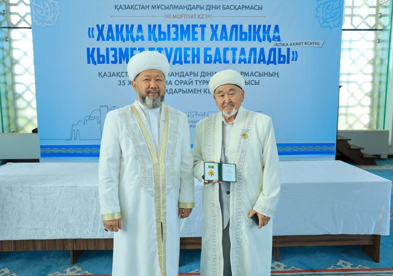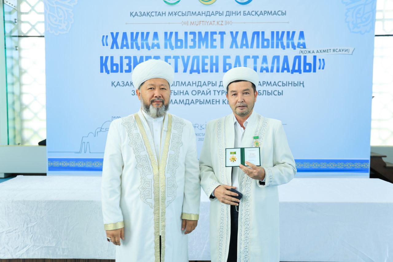 Кездесу соңында ҚМДБ-ның 35 жылдық мерейтойына орай дін саласында ұзақ жылдар бойы табанды қызмет етіп келе жатқан Түркістан облысының бірқатар ардагер имамдары мерекелік медальмен марапатталды.