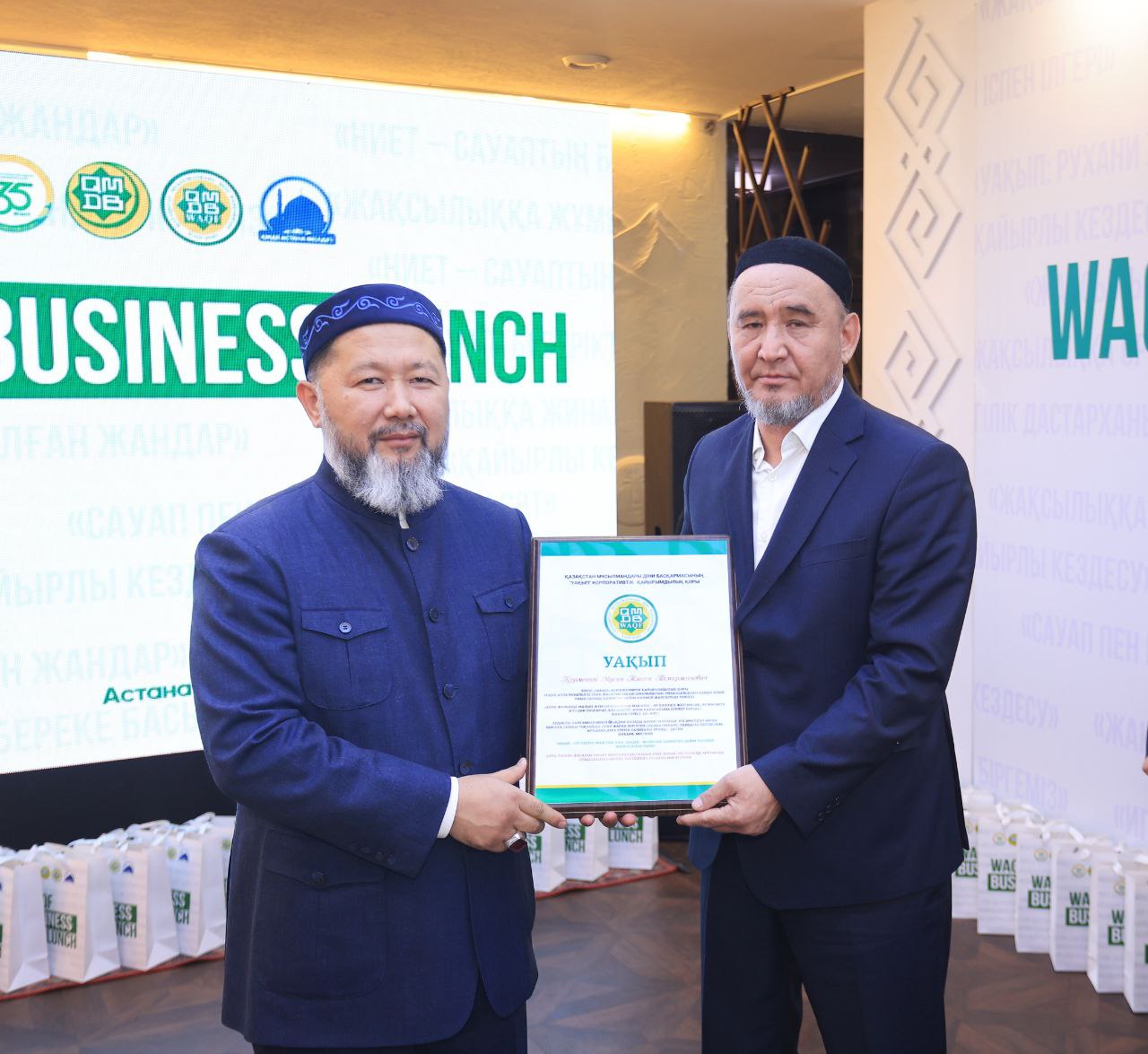Жиынға Қазақстан мұсылмандары діни басқармасының Төрағасы, Бас мүфти Наурызбай қажы Тағанұлы қатысып, Діни басқарманың негізгі жұмыс бағыттары мен уақып мәдениетінің қоғамдағы орнына тоқталды. Бас мүфти кәсіпкерлердің елдің рухани дамуына қосып жүрген үлесін атап өтіп, олардың қайырымды істеріне ризашылығын білдірді.