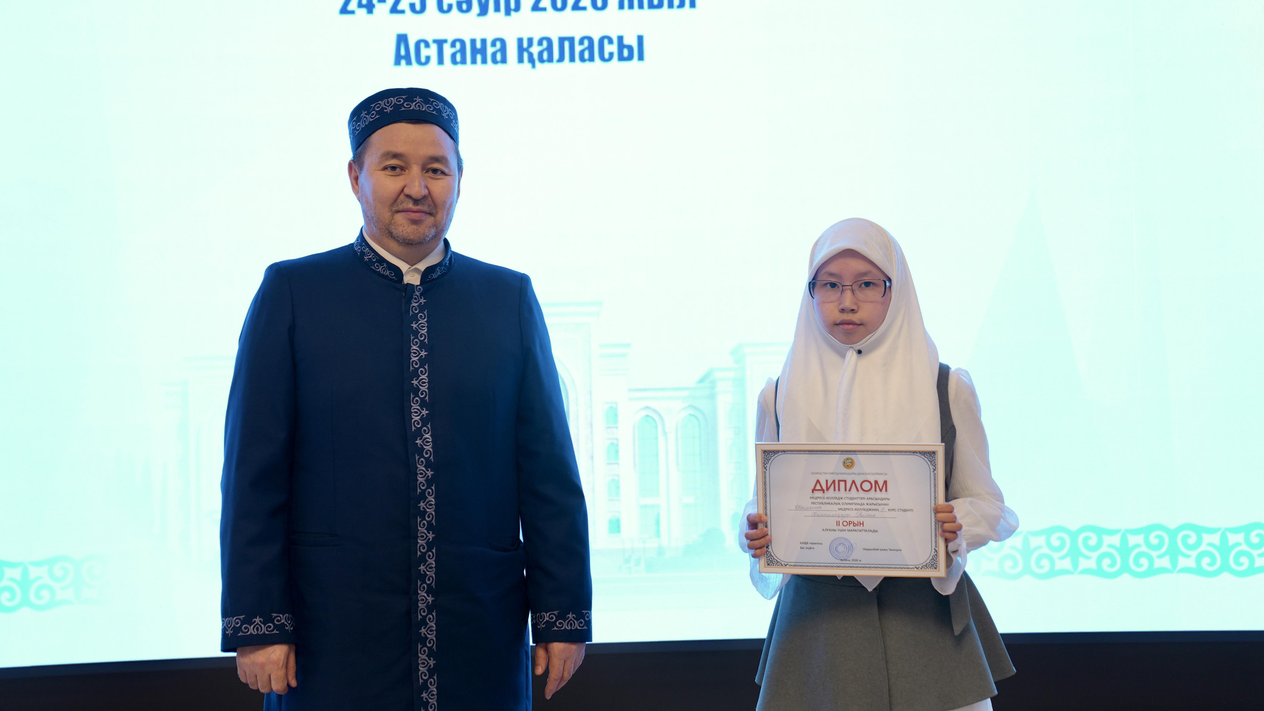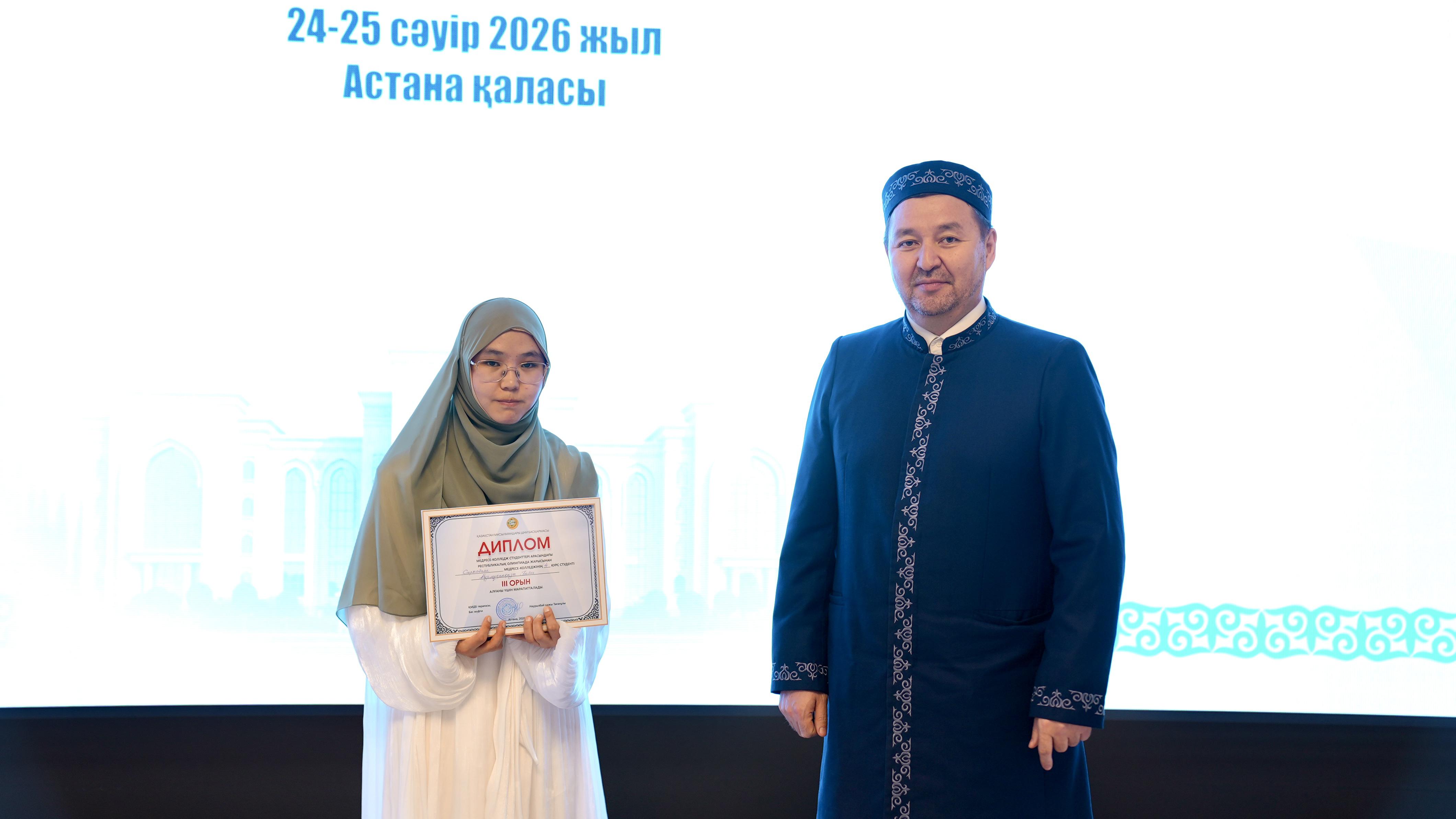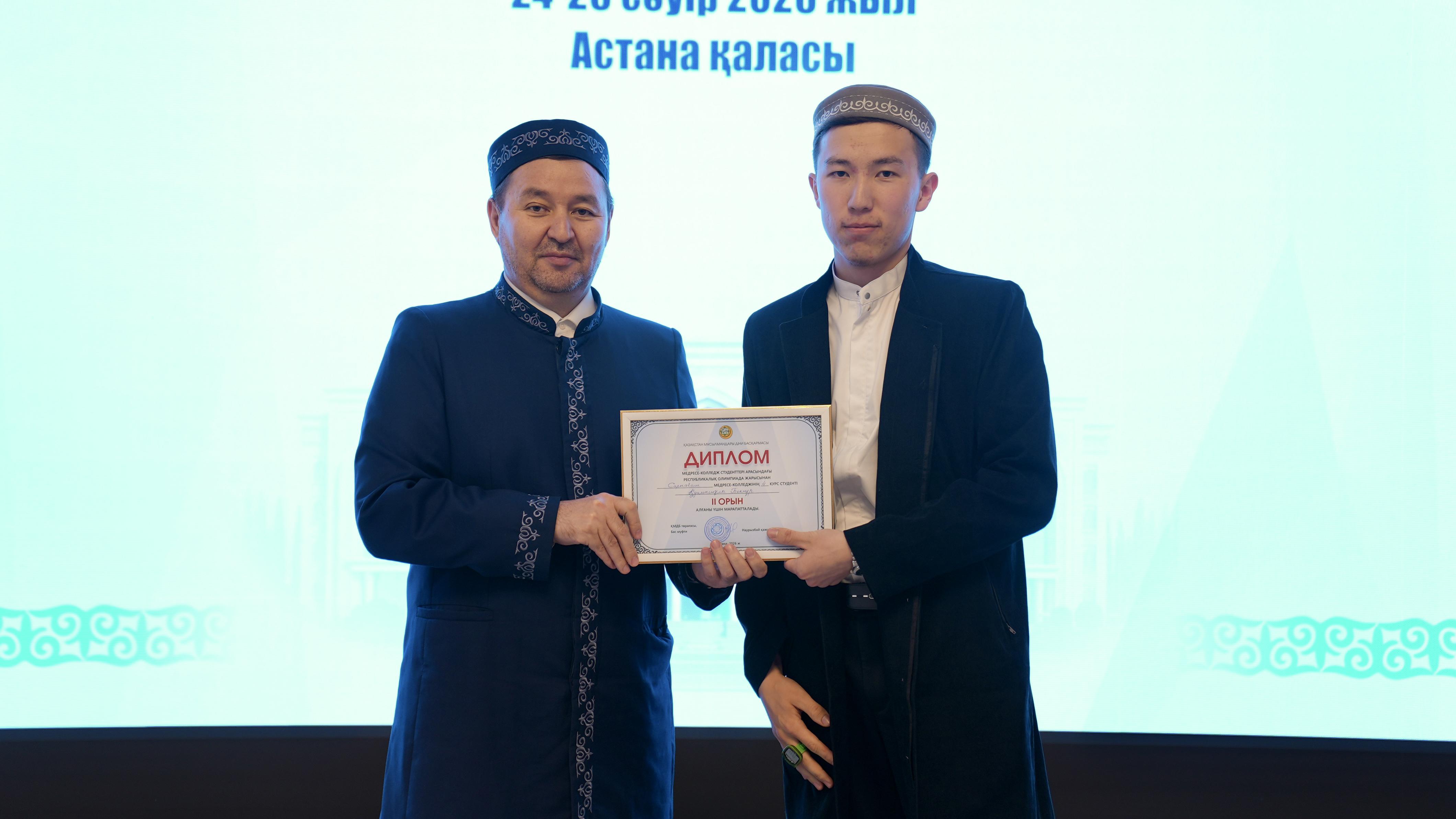 Жиынның соңында олимпиада жеңімпаздарына ҚМДБ төрағасы, Бас мүфти Наурызбай қажы Тағанұлы атынан диплом және қаржылай сыйақы табысталды.