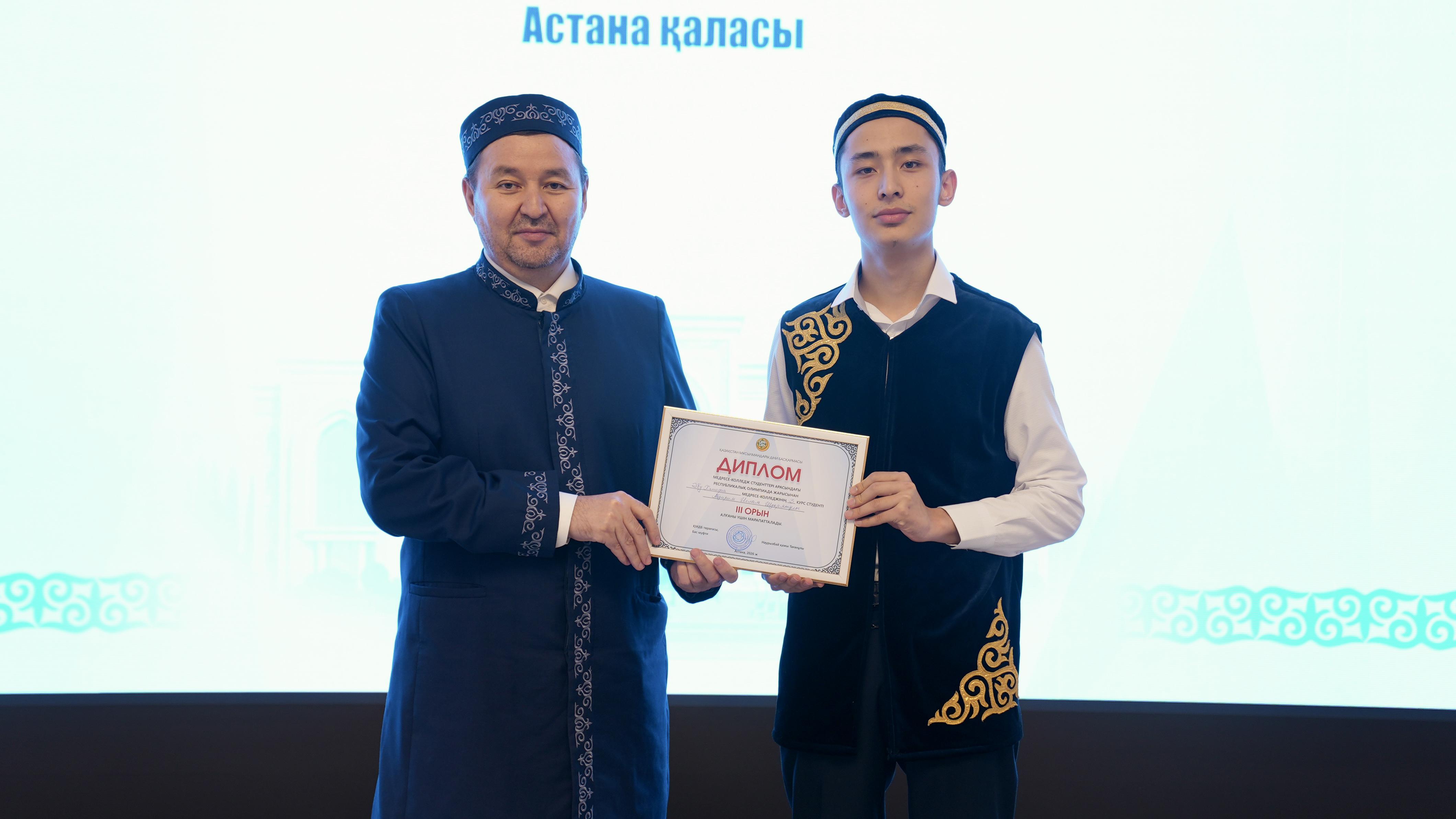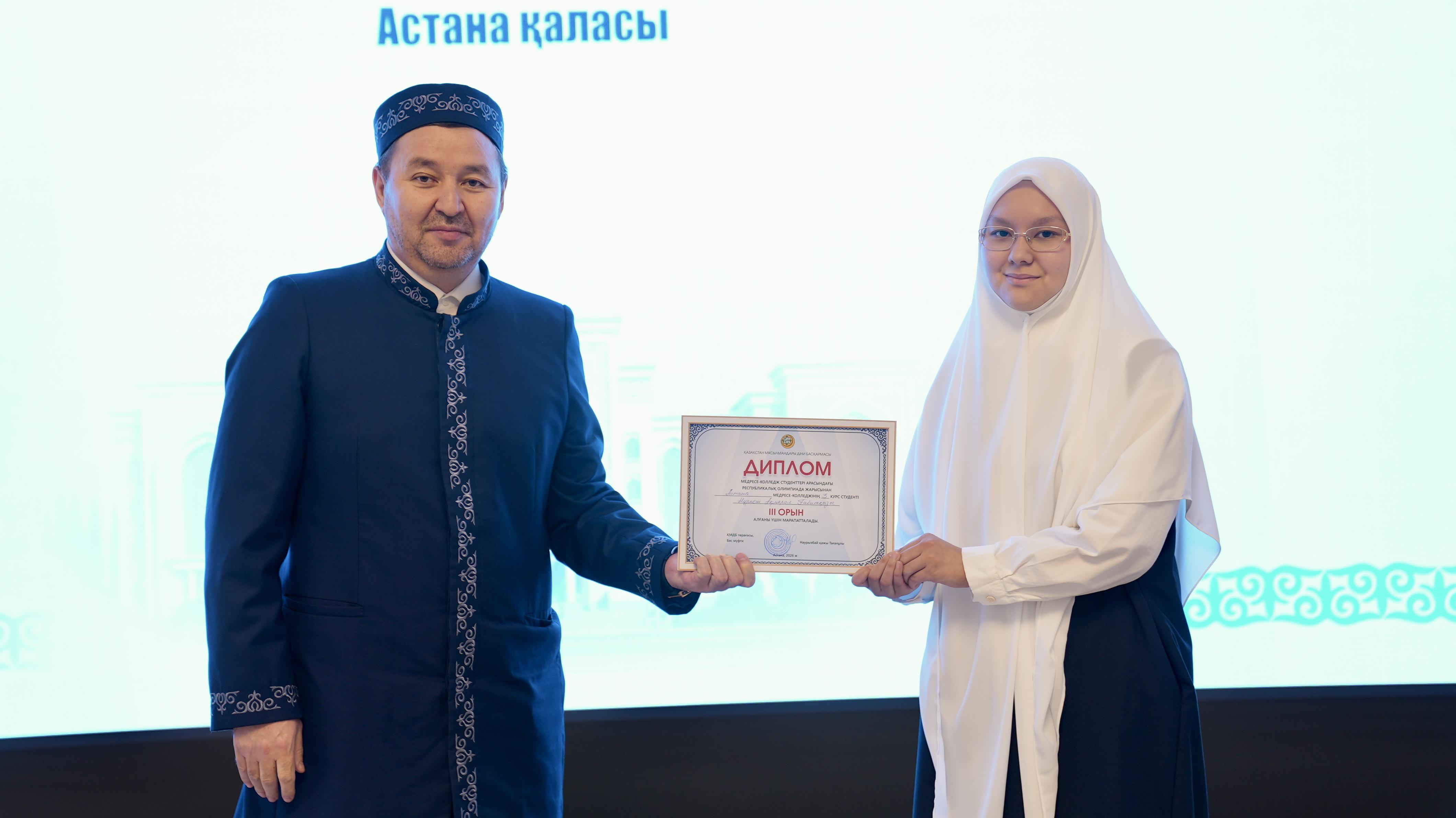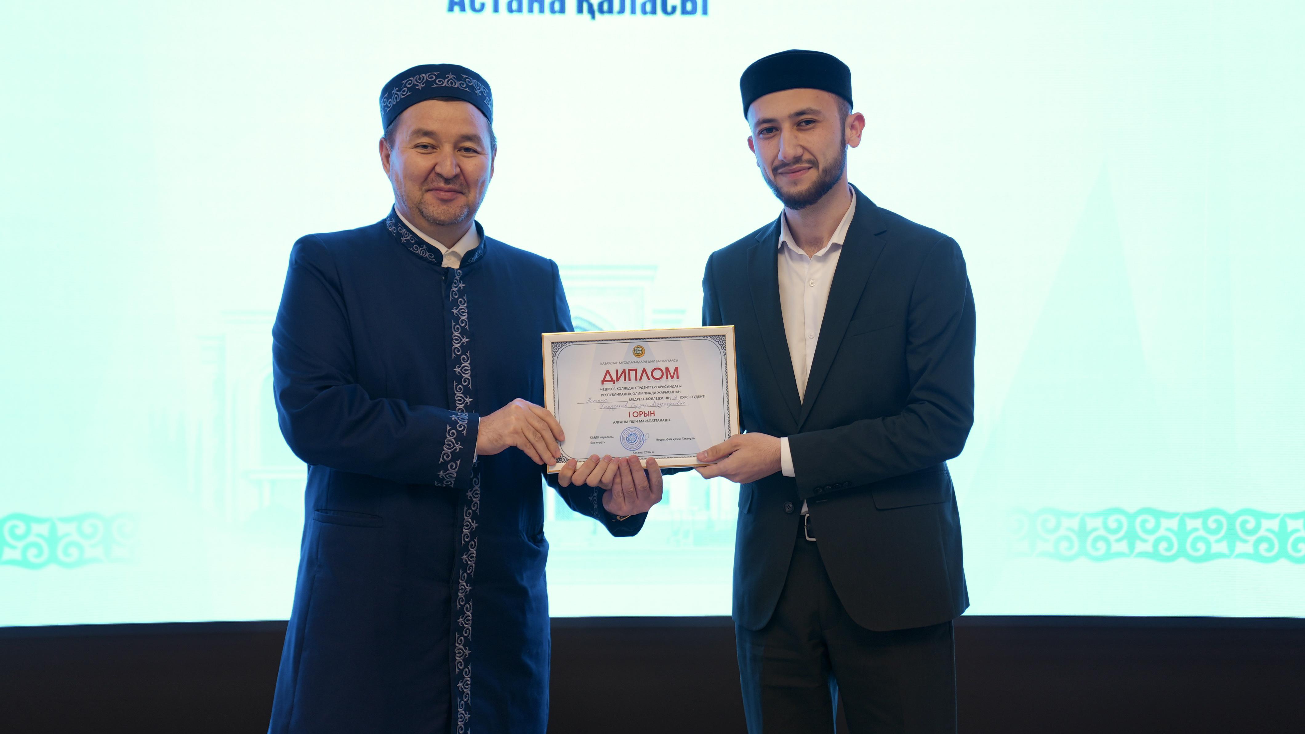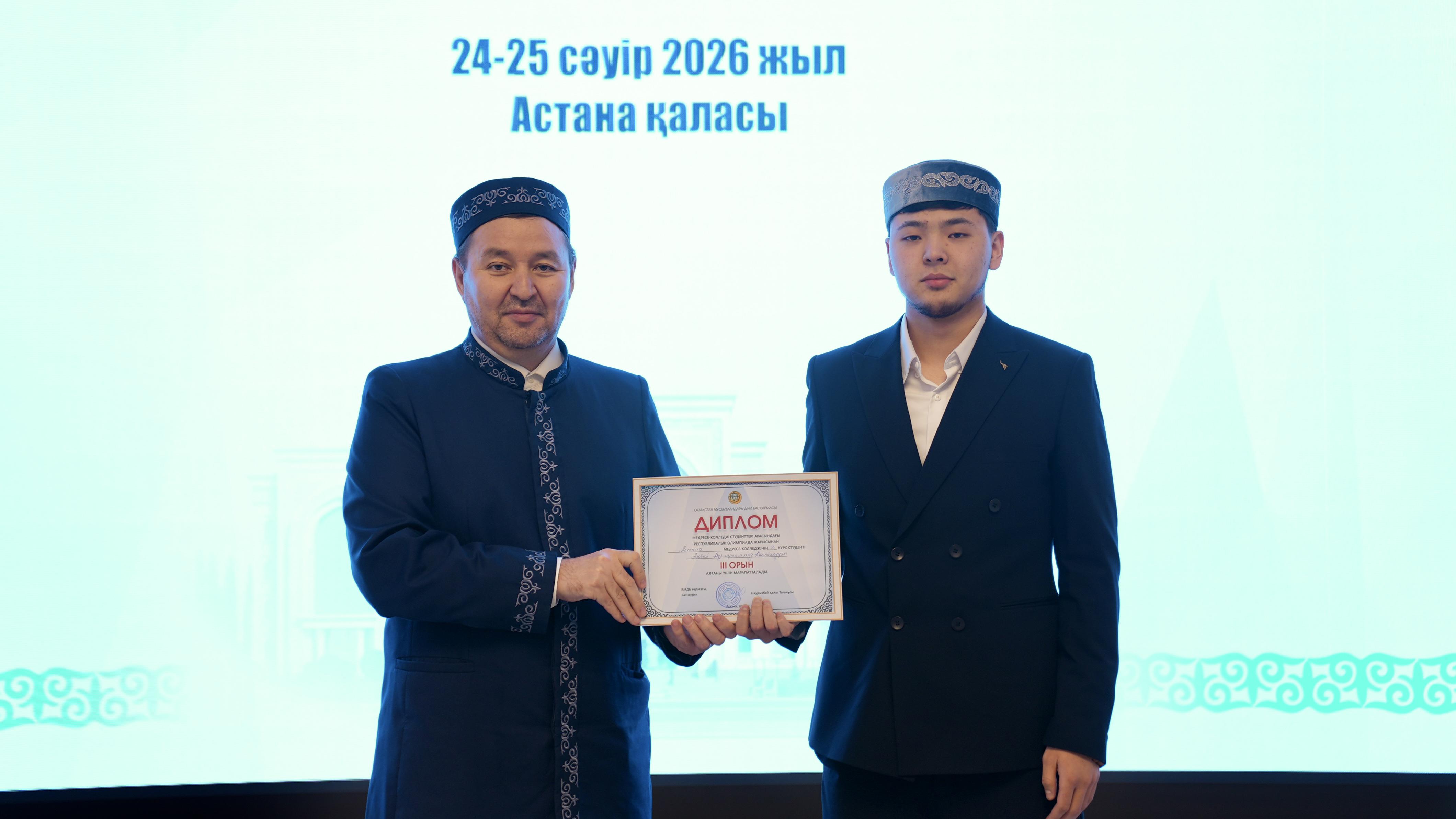 Жиынның соңында олимпиада жеңімпаздарына ҚМДБ төрағасы, Бас мүфти Наурызбай қажы Тағанұлы атынан диплом және қаржылай сыйақы табысталды.
