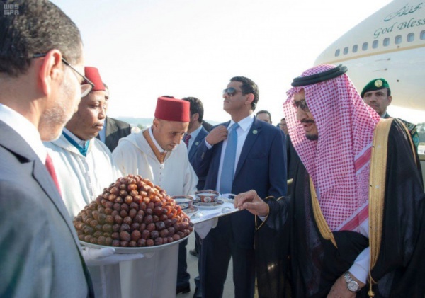 Салман Сауд елге келе салғанда, оны Марокконың премьер-министрі Саад Эддин Эл Отмани қарсы алған. Корольмен бірге құрамында министрлері, кеңесшілері, туыстары, қауіпсіздік қызметінің қызметкерлері мен серіктестері бар мыңнан аса адам келген. 800-ден астам мейманхана нөмірлеріне тапсырыс беріліп, корольдің өзімен бірге әкелінген көліктеріне қоса 200 автокөліктер жалға алынған екен. Делегацияны қарсы алуға қоғамдық тамақтандырудың ең үздік компаниялары тартылған екен.