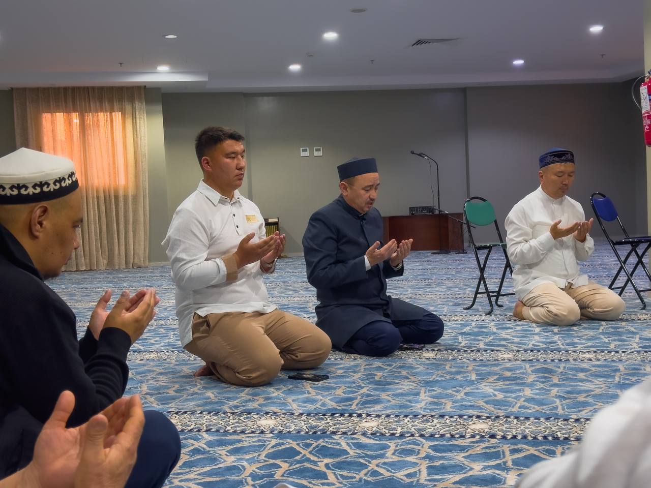 Жиын басында ҚМДБ Қажылық миссиясының жетекшісі Ершат Ағыбайұлы қажыларға Бас мүфти Наурызбай қажы Тағанұлының сәлемін жеткізіп, Рамазан айымен құттықтады. Қасиетті Құран аяттары оқылып, еліміздегі су тасқынына байланысты Алла Тағаладан жәрдем сұрап, дұға жасады. Қажылар бір мезетте еліміздің амандығы мен тыныштығын тіледі.
