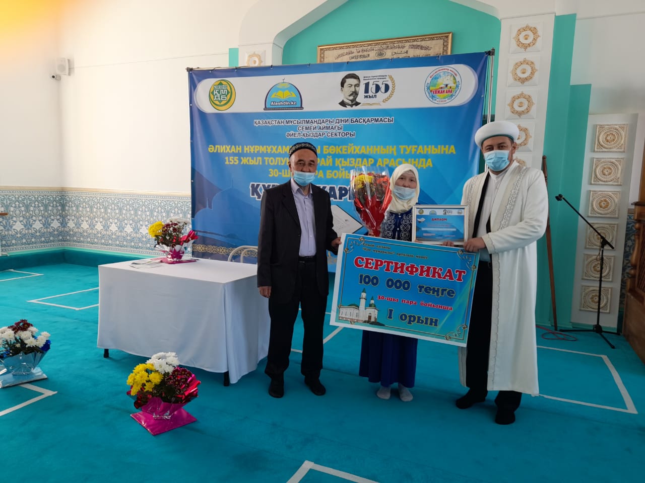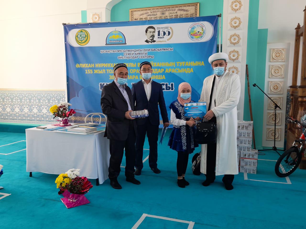 Мероприятие, посвященное 155-летию великого сына нашего народа А. Бокейханулы, прошло в полном соответствии с санитарно-эпидемиологическими требованиями. В начале мероприятия были прочитаны аяты Корана и посвященны духу Алихана Бокейханулы.