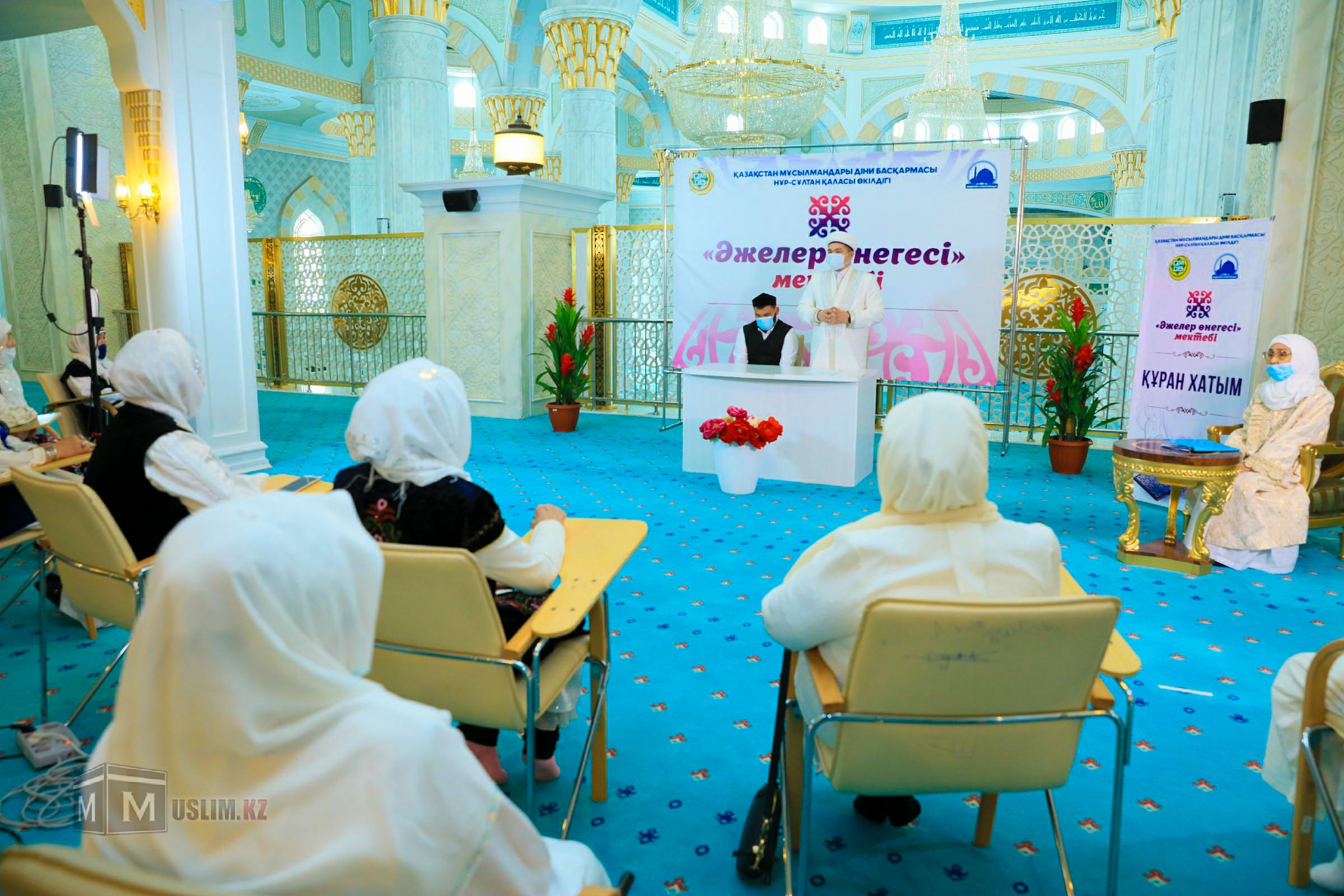 Сегодня в Республиканской мечети «Хазрет Султан» в Нур-Султане состоялось торжественное мероприятие. По инициативе устаза мечети Бекет Гульсары была сформирована особая группа из бабушек, учащихся в мечети, и официально открылась школа «Әжелер өнегесі» (Пример бабушек).