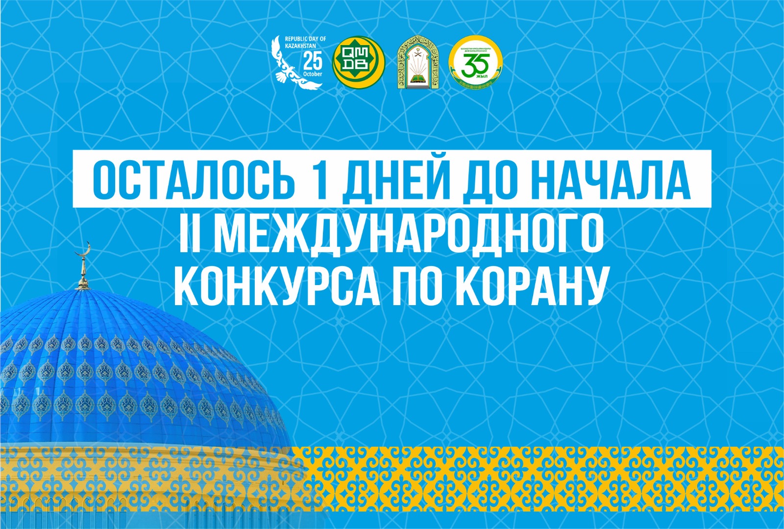 Конкурс пройдет 15–16 октября в Республиканской Главной мечети города Астаны и будет транслироваться в прямом эфире на канале муфтията «Munara TV» и YouTube-канале «Мүфтият ДУМК».